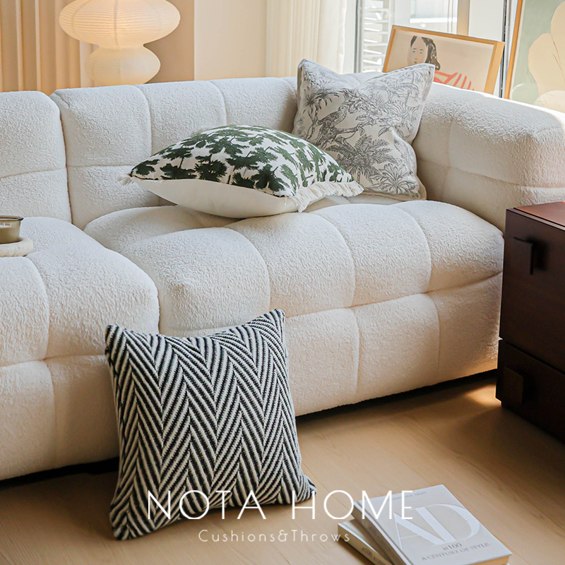 新中式抱枕绿色树叶枕套人字纹超软方枕民宿软装沙发靠垫车载靠枕