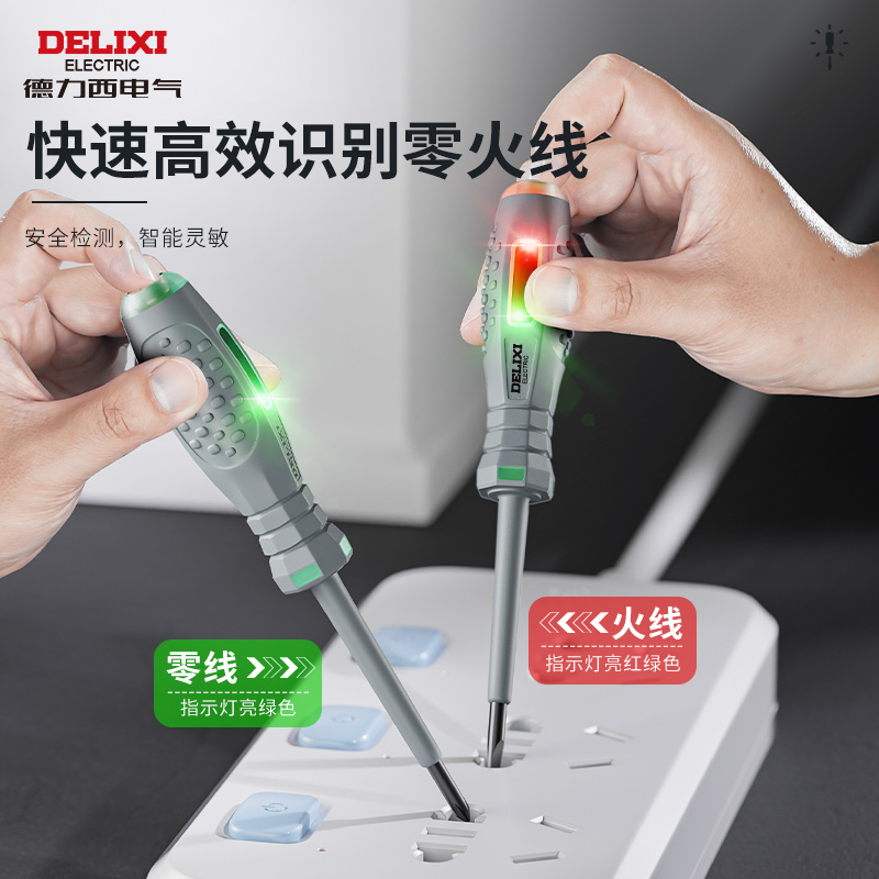 德力西电笔电工专用测断线漏电智能验电试电笔高强度螺丝刀测电笔