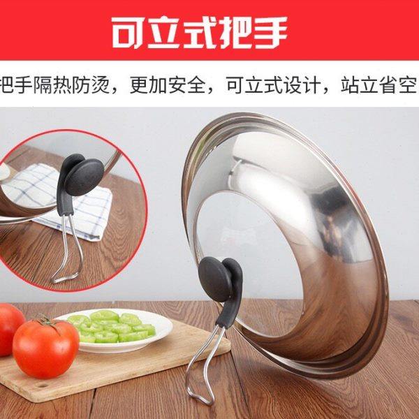 铁人铁锅不锈钢锅盖可视可立盖子防烫手柄可挂立加厚加高组合锅盖
