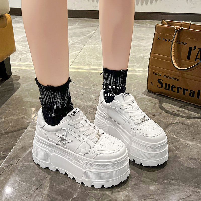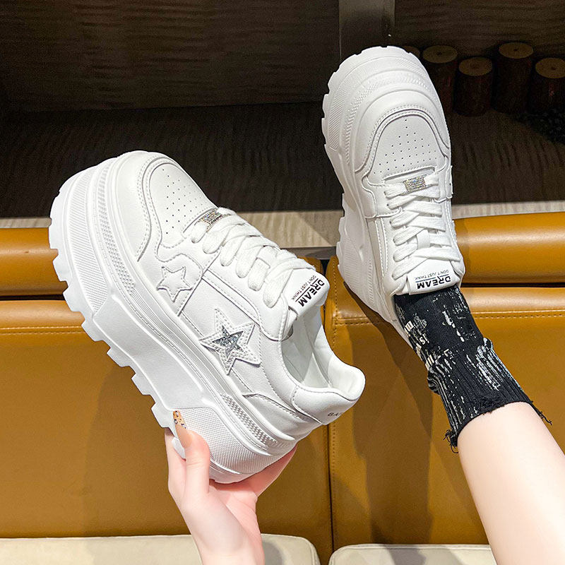 2025春新款9cm内增高女鞋厚底配裙子小白鞋百搭运动休闲单鞋板鞋