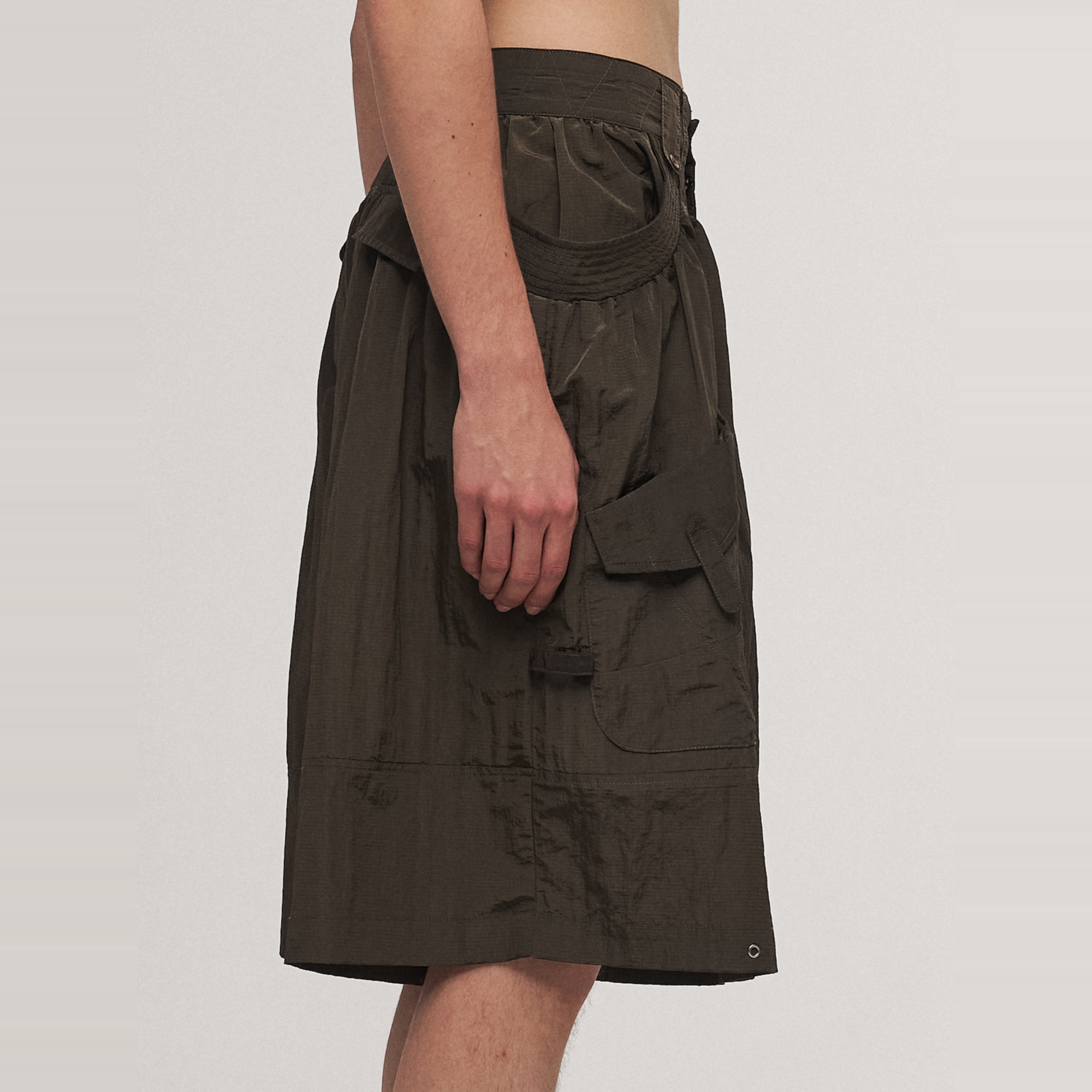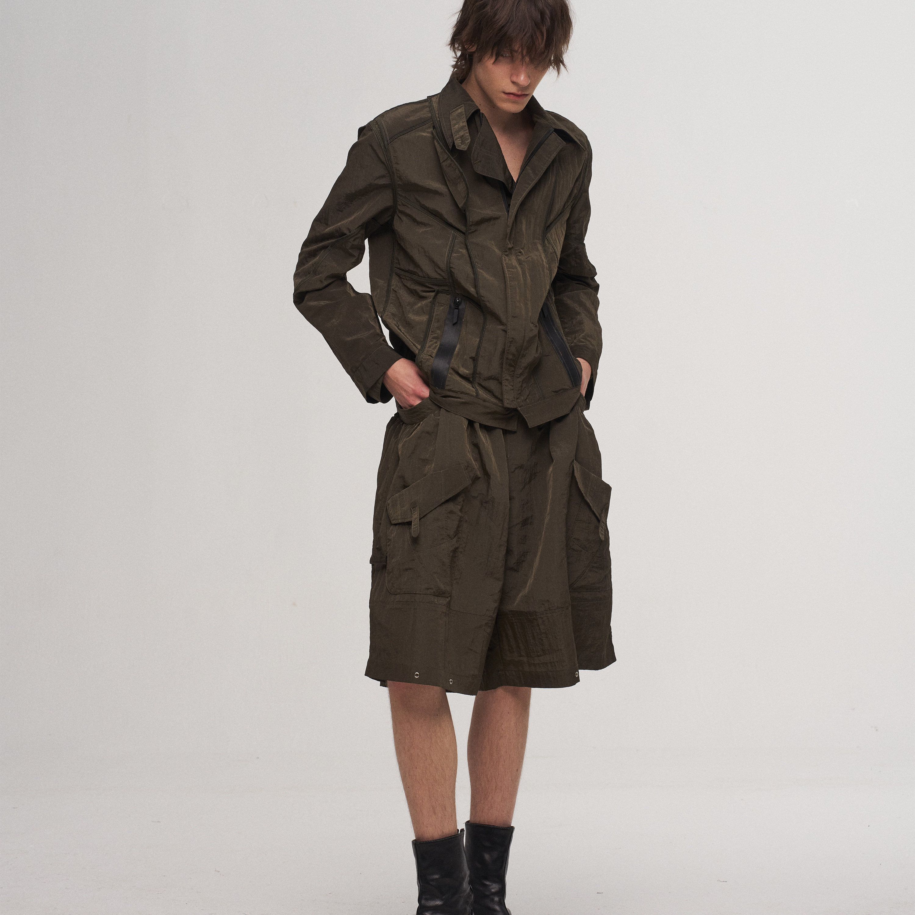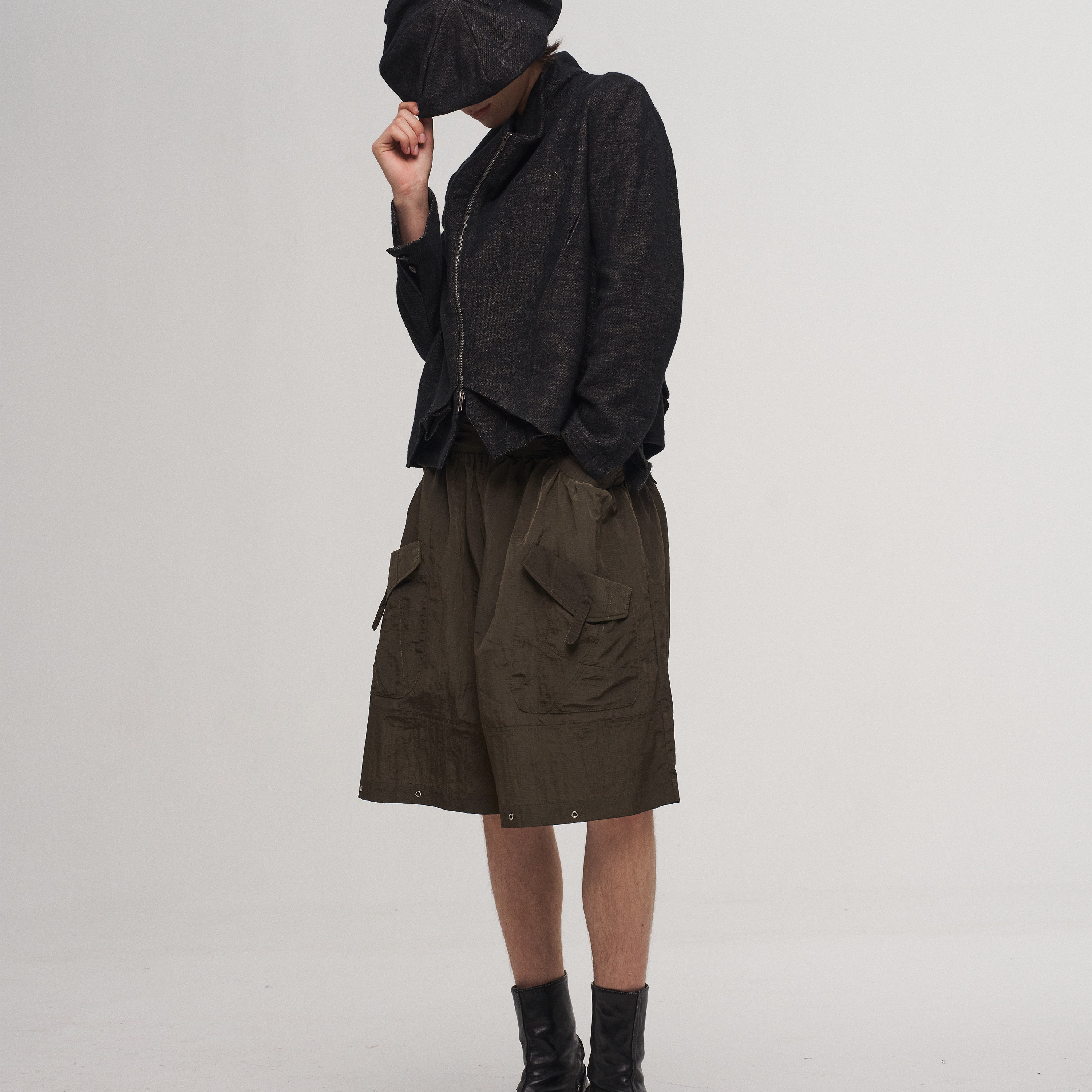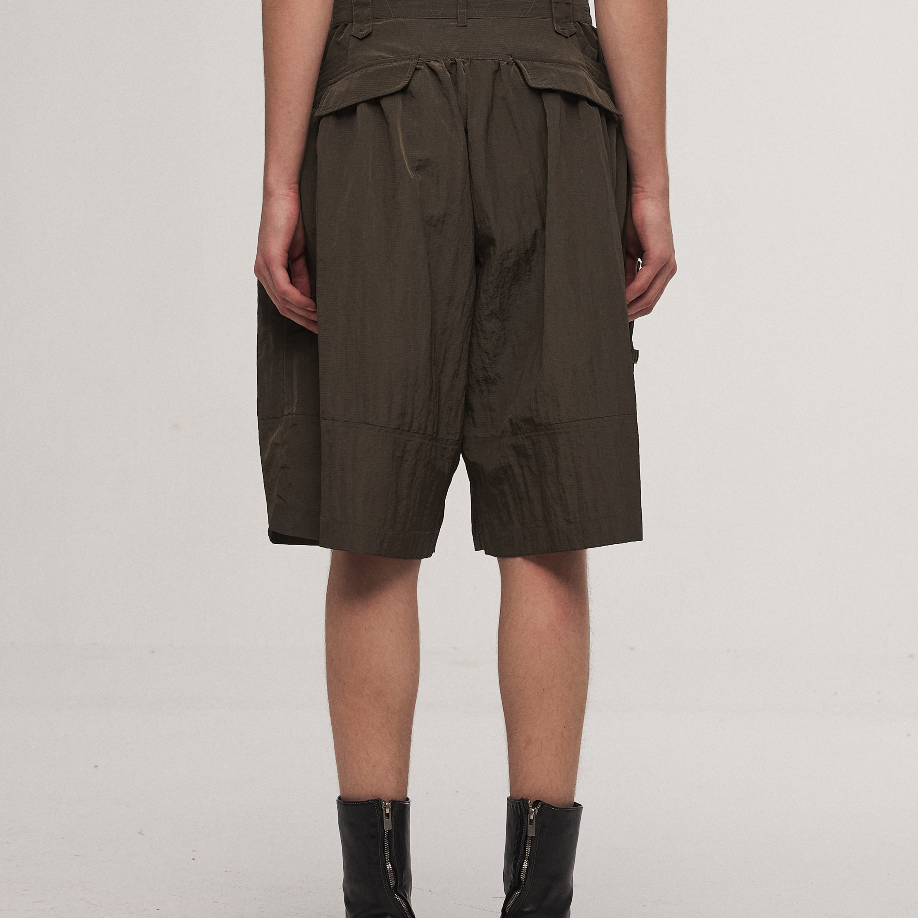 「 凌鸦ILNya 」差池_棕绿 降落伞短裤 立褶夏季大口袋宽松短裤