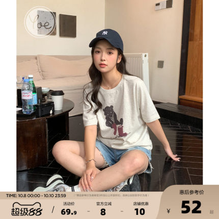 yoe短袖t恤女上衣女装米杏色休闲纯棉夏季新款别致宽松小个子别致