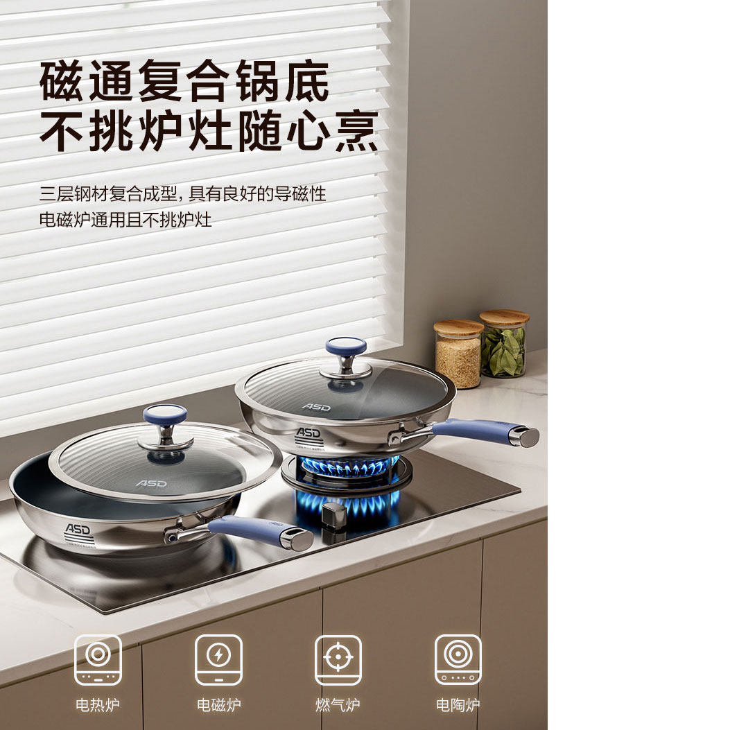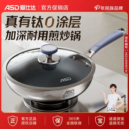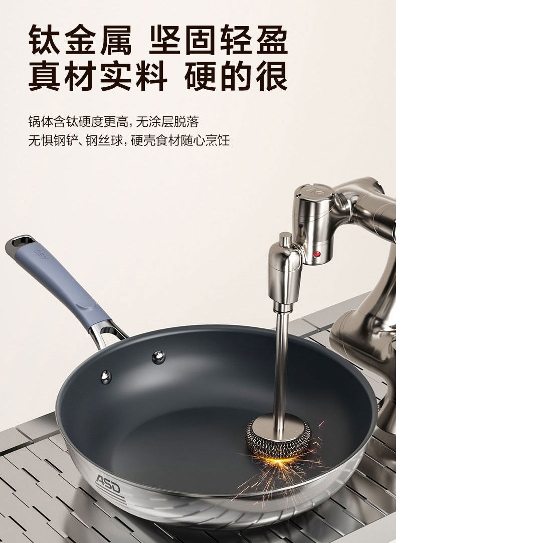 【商超同款】爱仕达有钛无涂层平底锅不粘家用煎锅燃气电磁炉适用