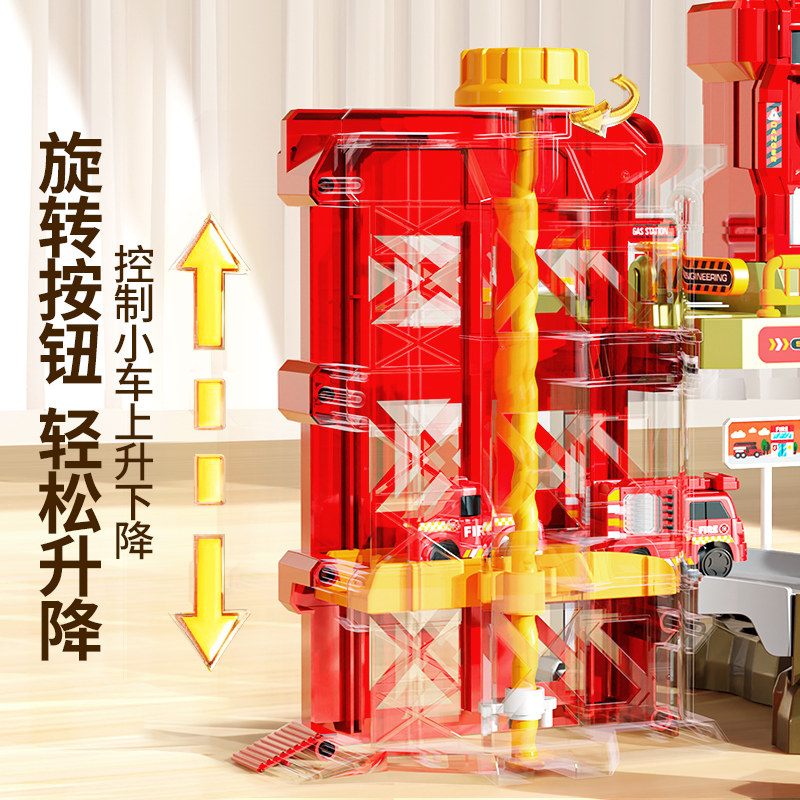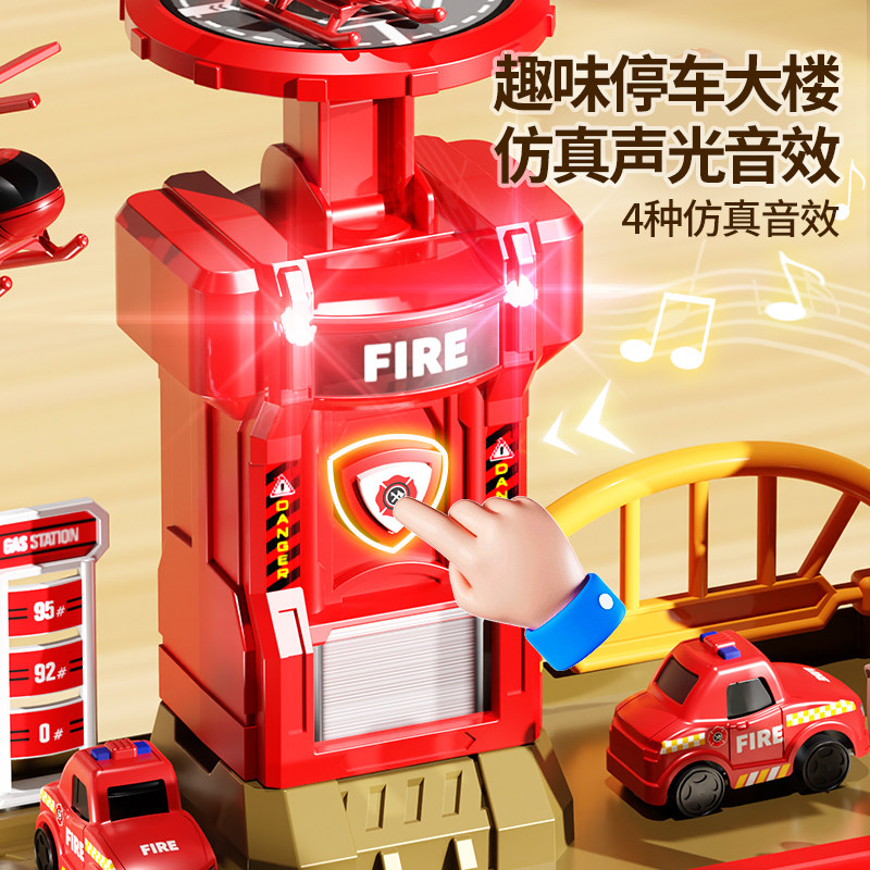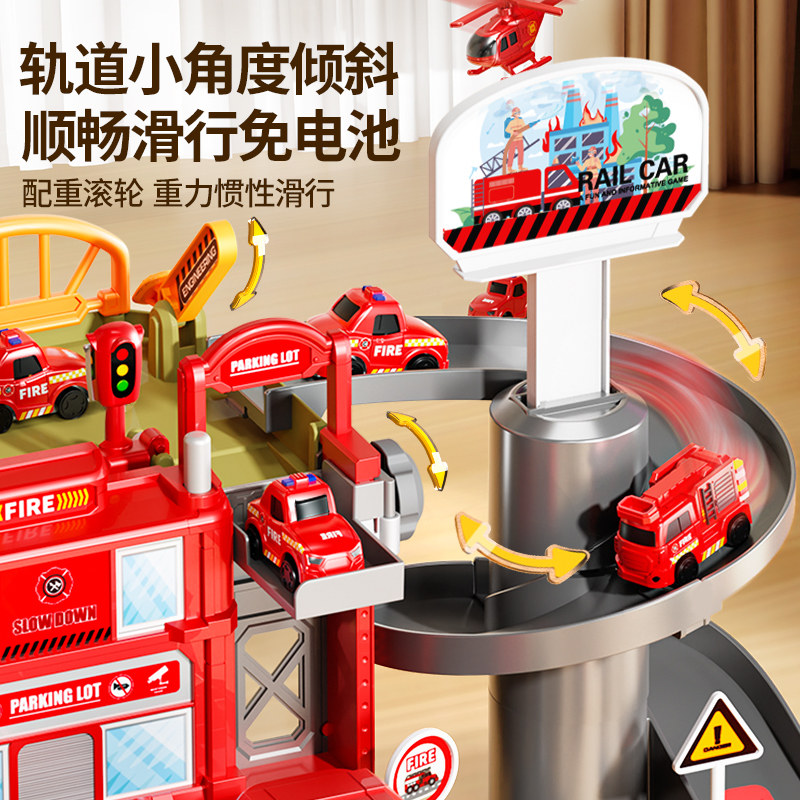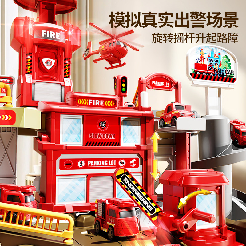 消防轨道车滑行儿童停车场小火车电动男孩汽车闯关大冒险益智玩具
