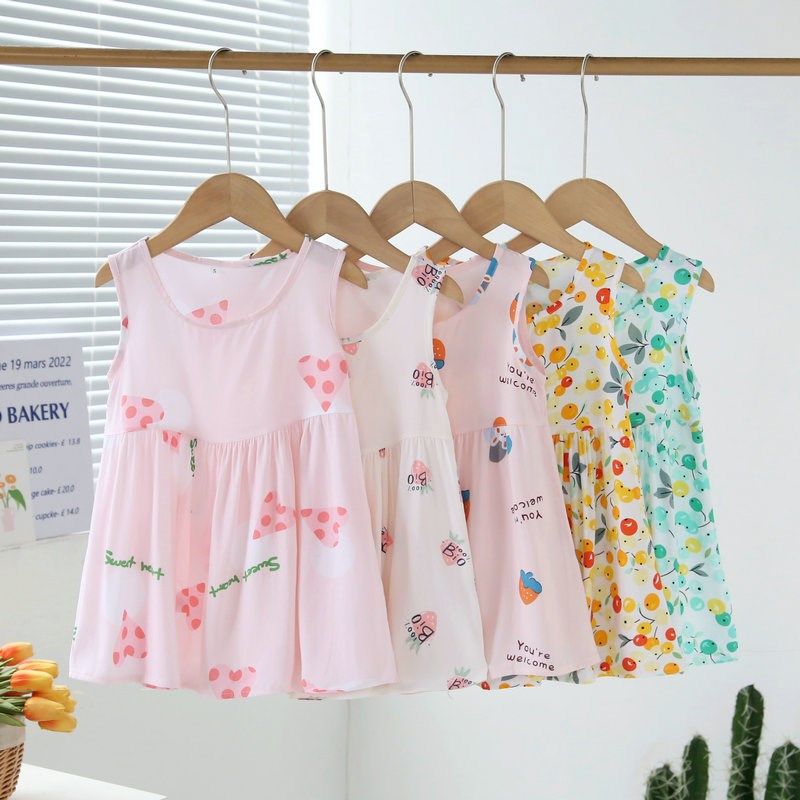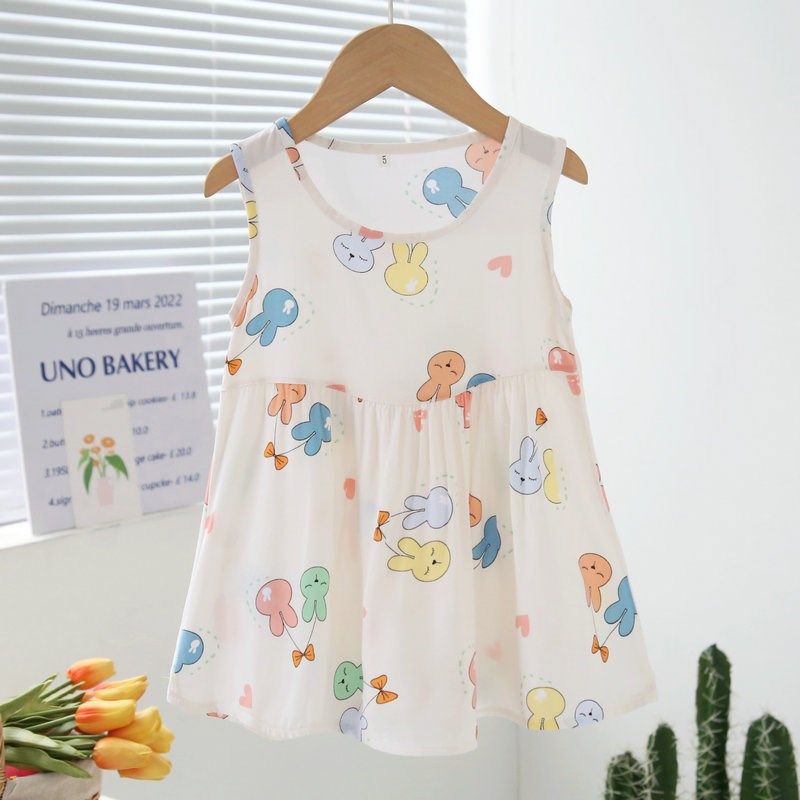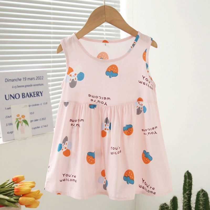 夏季女童棉绸背心裙薄款女孩公主宝宝卡通绵绸家居裙无袖连衣裙子