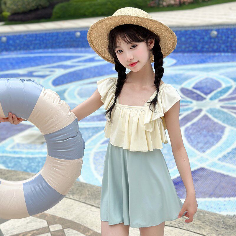 女童泳衣夏季2025新款儿童洋气连体裙式泳装女大童网红吊带游泳衣