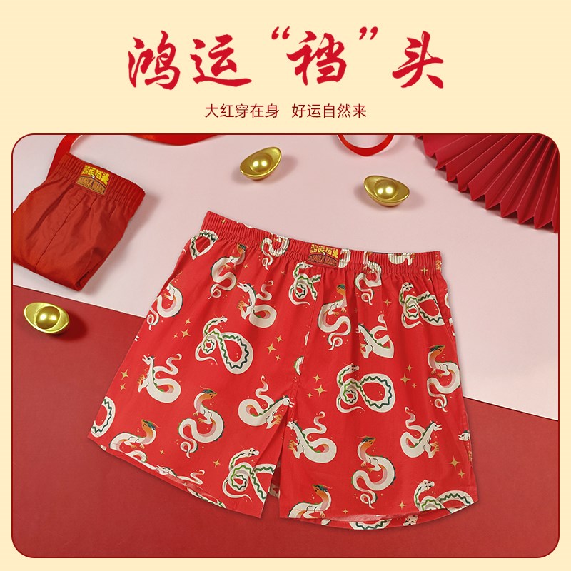 本命年阿罗裤红色内裤男生纯棉宽松大码舒适平四角短睡裤男士内裤