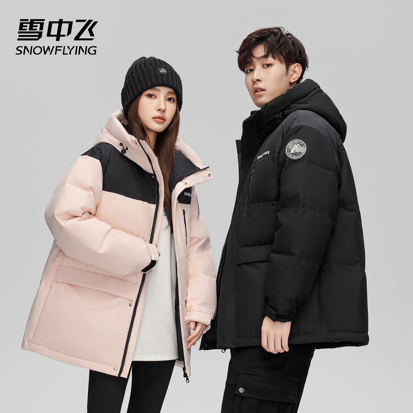 雪中飞SNOWFLYING美式复古纯色落肩时尚户外日常通勤百搭羽绒服