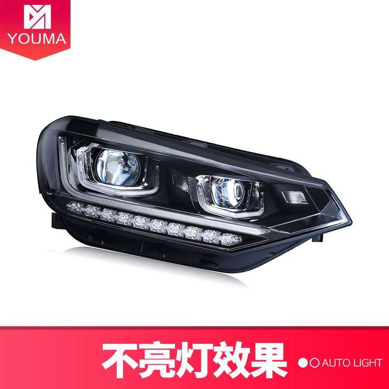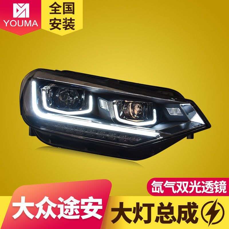 专用于16-19款新途安大灯总成改装LED日行灯双光透镜氙气大灯总成