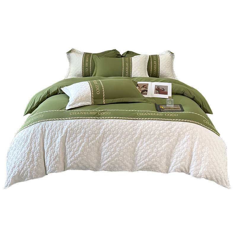 2024亲肤棉绣花四件套拼接立体床上用品浮雕碎花公主风床单被套