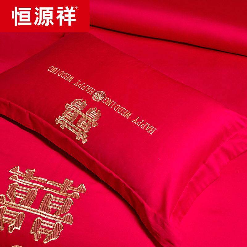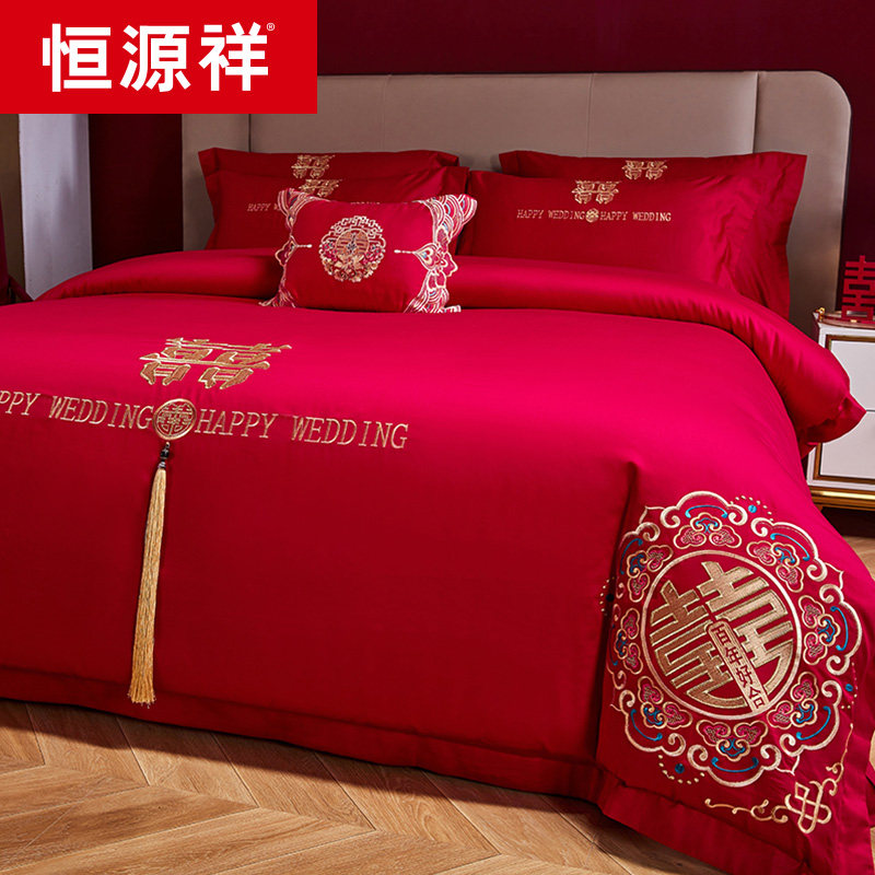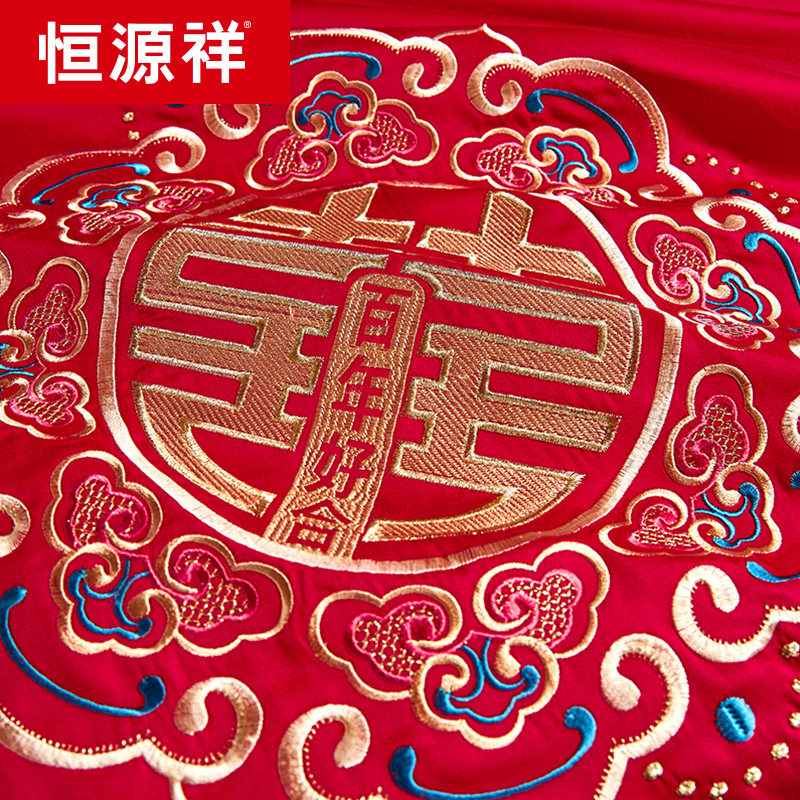 恒源祥结婚床上用品四件套婚庆纯棉100全棉床单被套大红色喜被新