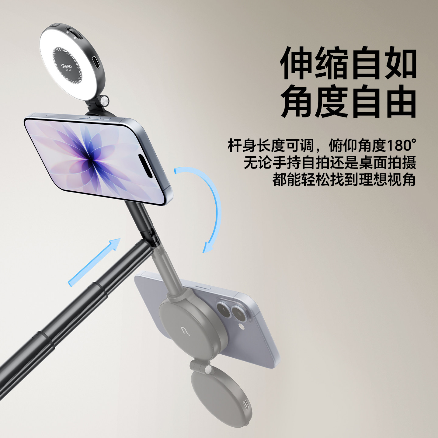 Ulanzi优篮子MT-71磁吸登山扣手机支架迷你便携三脚架vlog直播短视频拍摄手柄拍照手持桌面延长自拍杆三角架