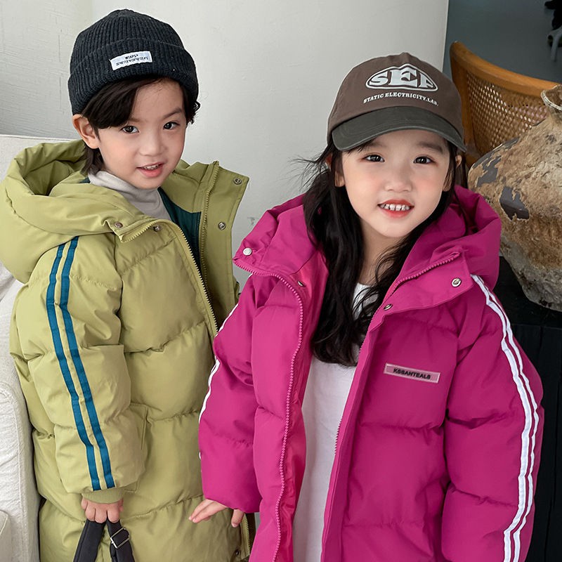 2024新款女童中长款连帽羽绒棉袄男童加厚过膝长款保暖棉服冬季