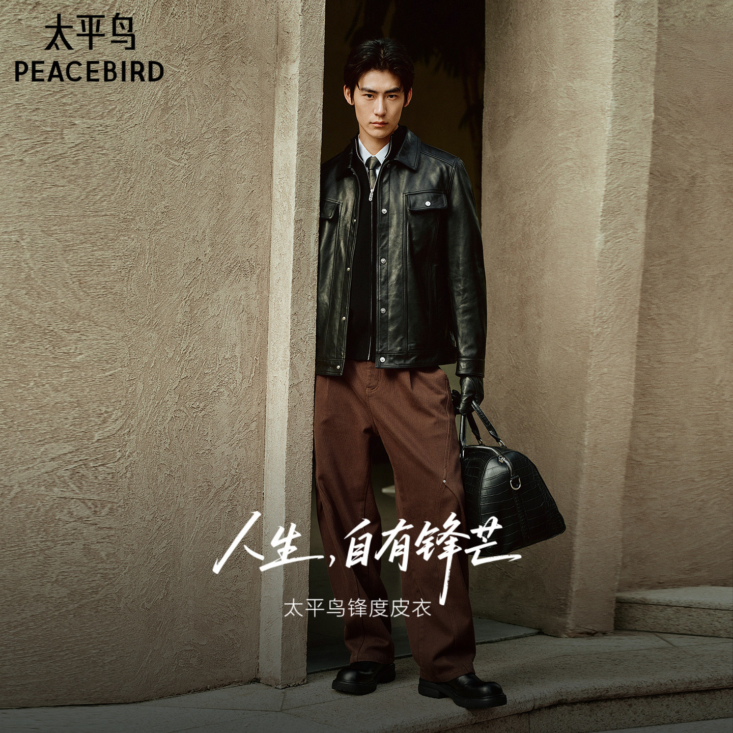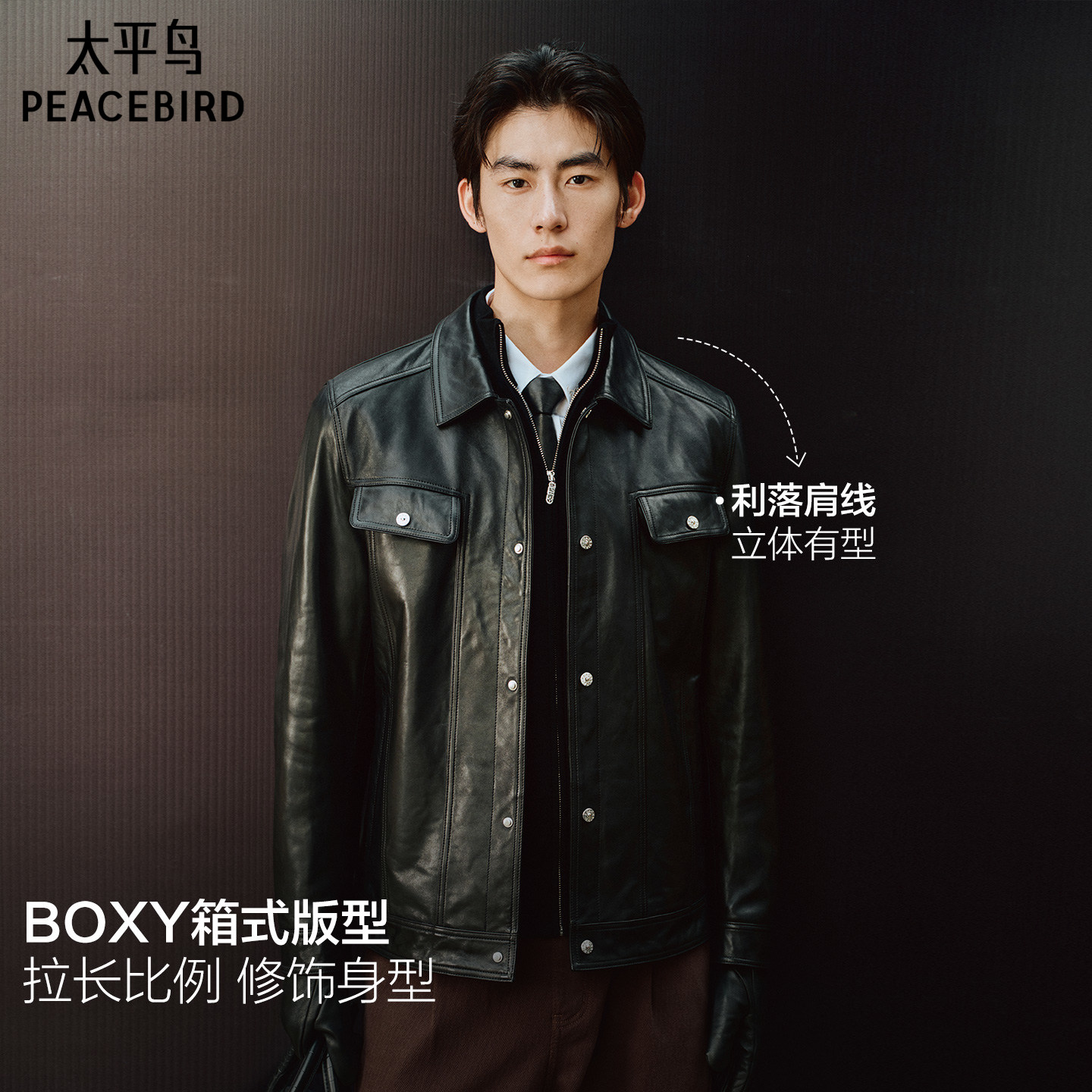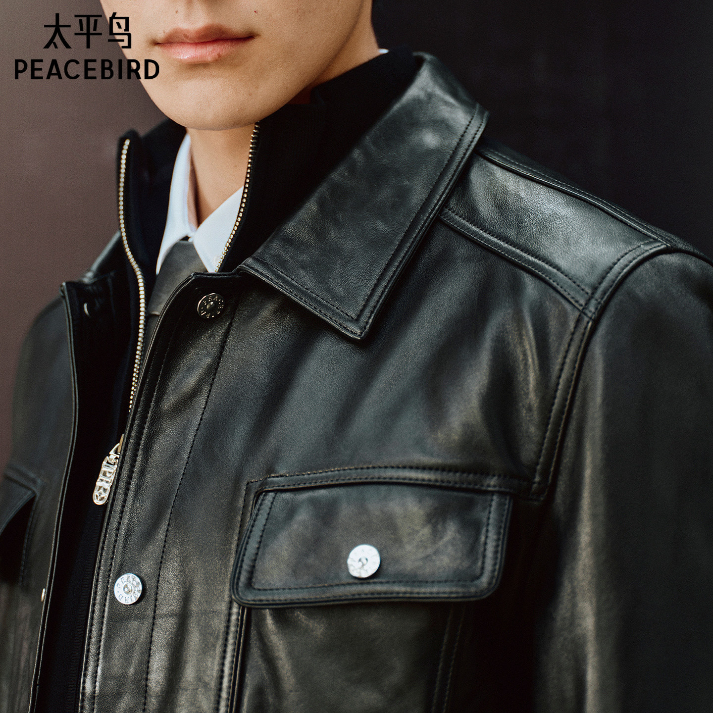 【锋度皮衣】太平鸟男装绵羊皮夹克新款油蜡真皮外套潮B1BDF4F07