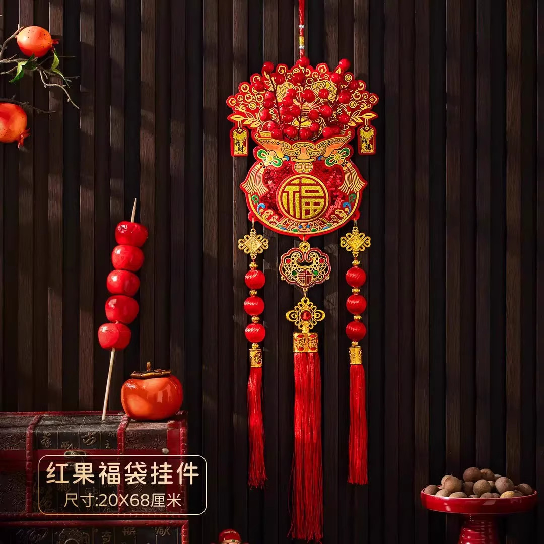 2026新年过年装饰挂件喜庆钱袋福字大门马年春节氛围红果福袋挂件