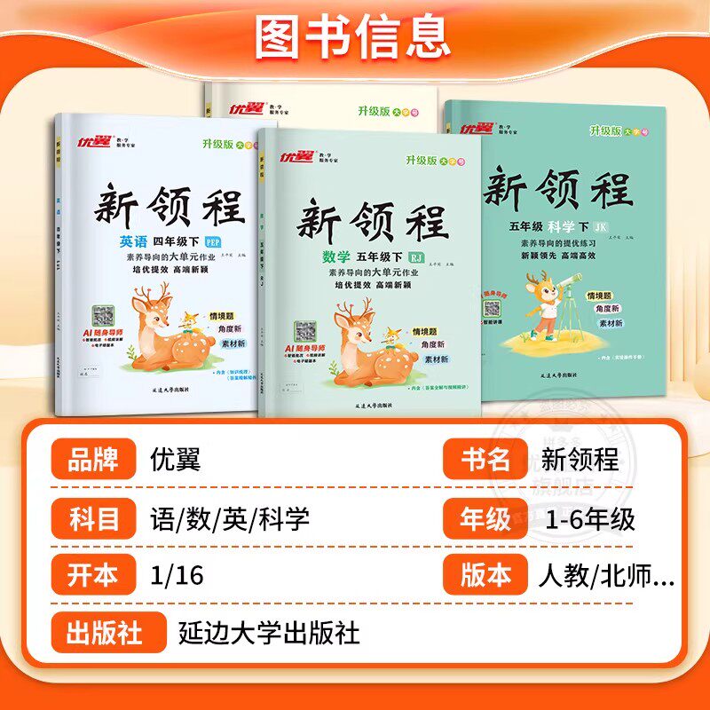 2026春新版优翼新领程小学一二三四五六年级上下册语文数学英语科学人教版北师版苏教卓越版+预习复习册小学生同步课本课堂作业本