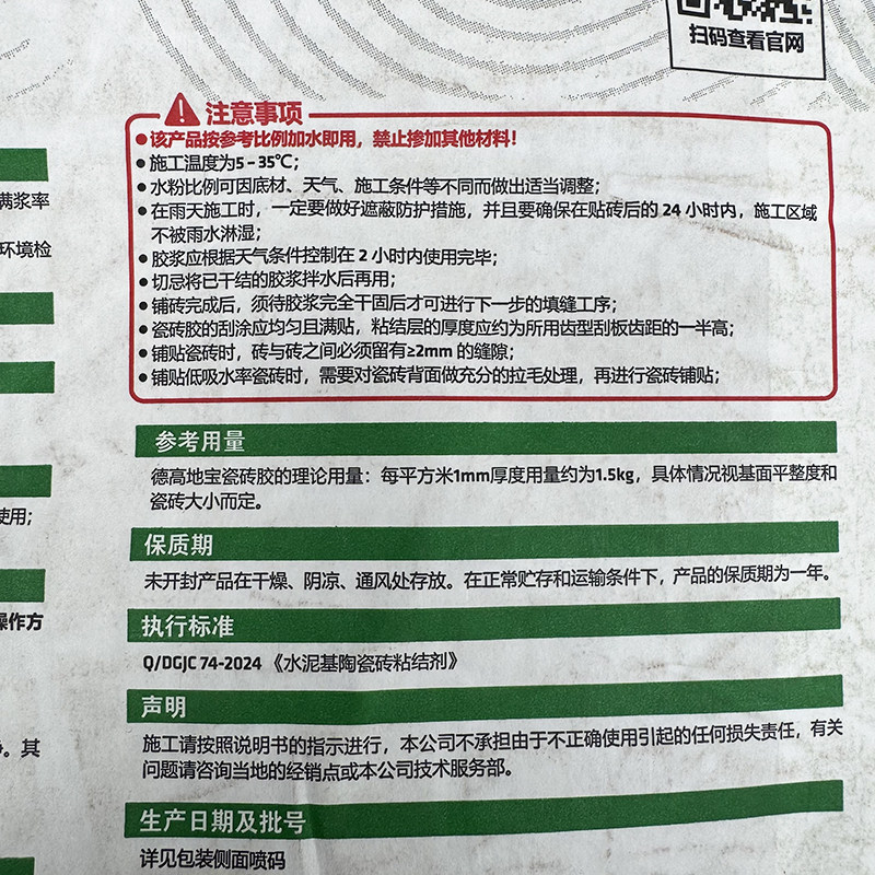 德高地宝瓷砖胶墙地砖强力玻化砖粘合剂防空鼓瓷砖胶粘接胶泥20KG