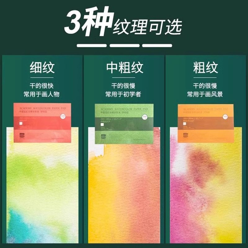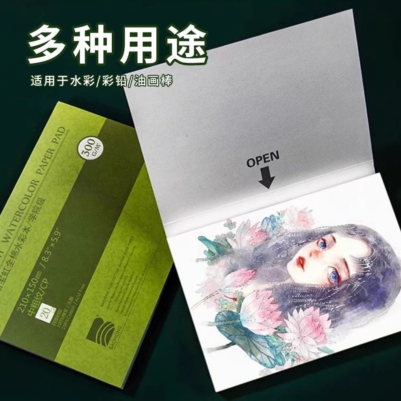 宝虹棉浆水彩纸300g水彩本四面封胶绘画本学院级画纸中粗纹儿童手绘画画专用纸手绘本涂鸦绘画纸美术生用细纹