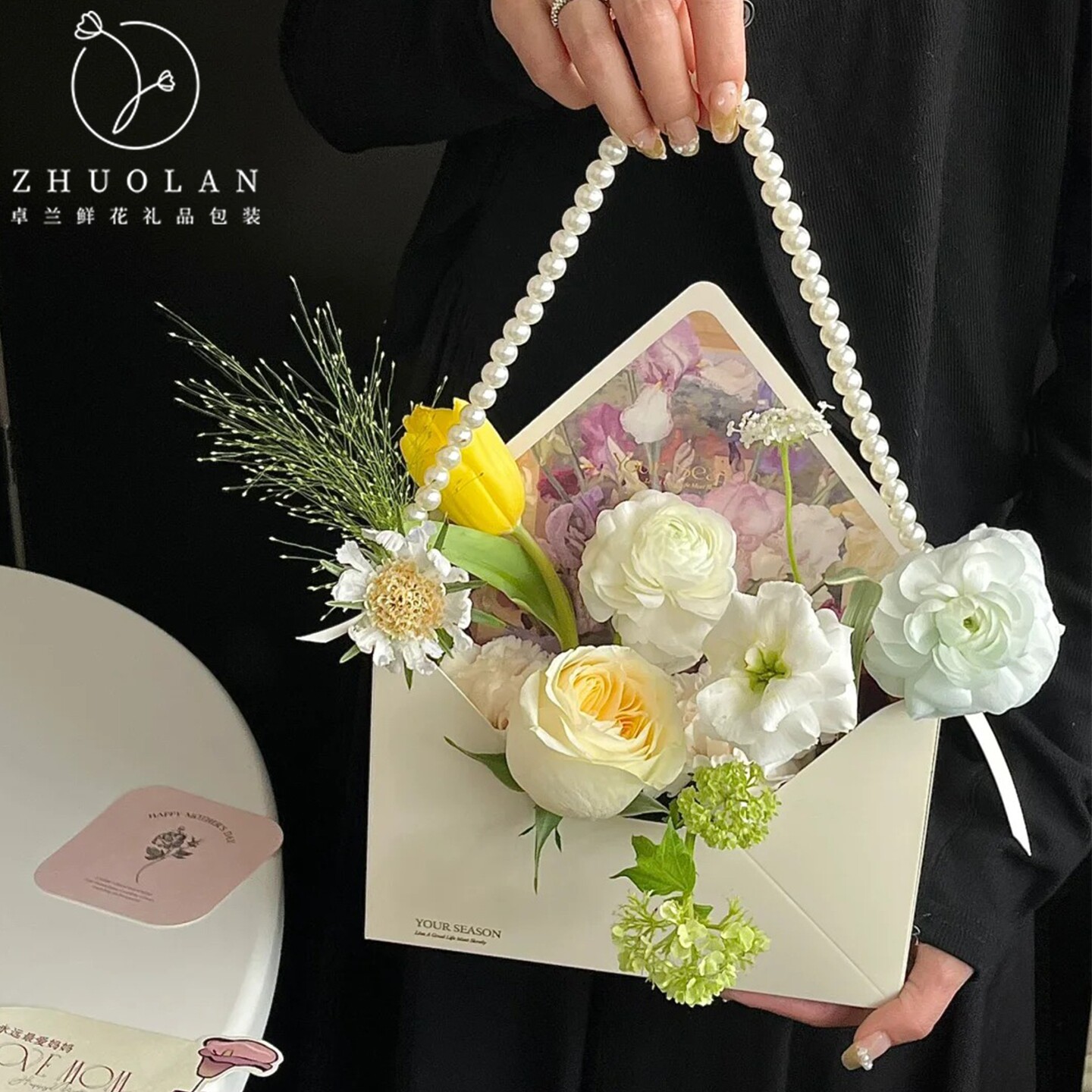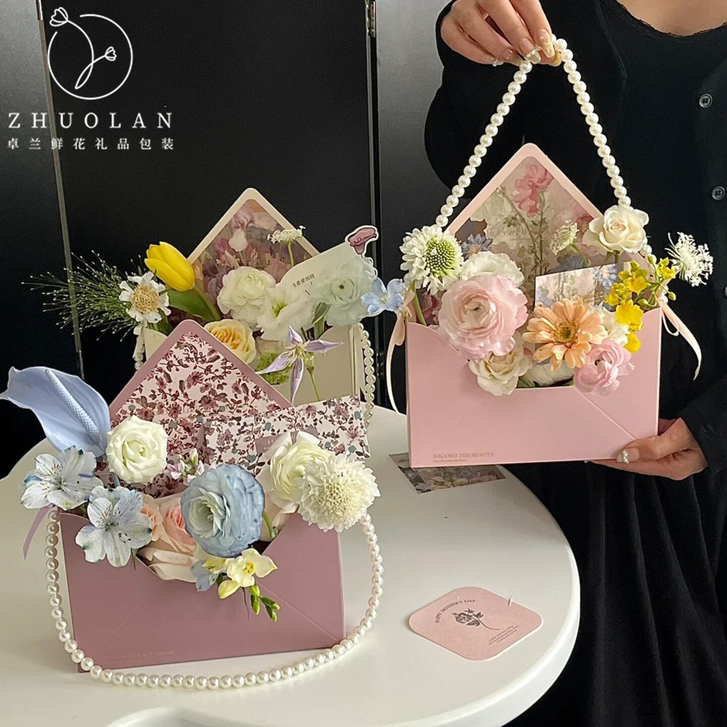卓兰信封花束包装插花盒送朋友闺蜜礼品盒鲜花玫瑰包装盒花店装饰