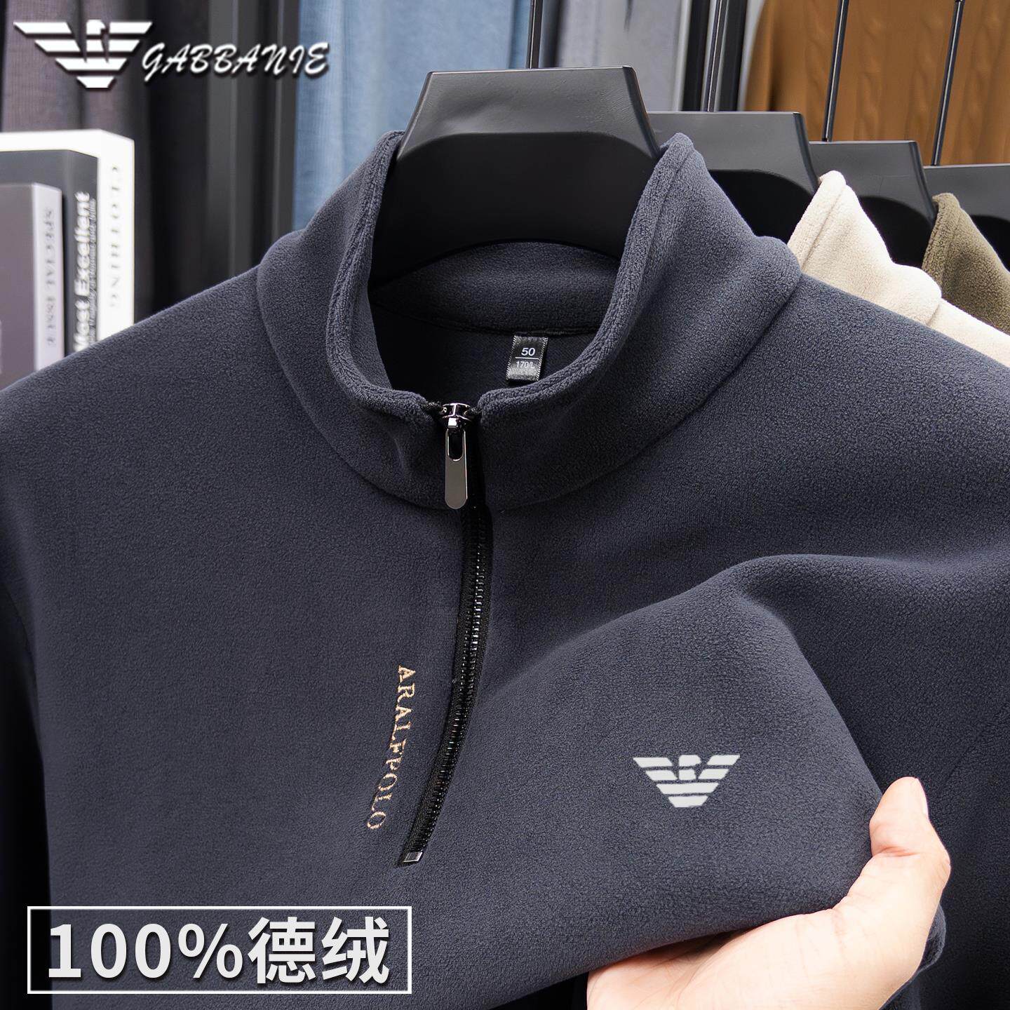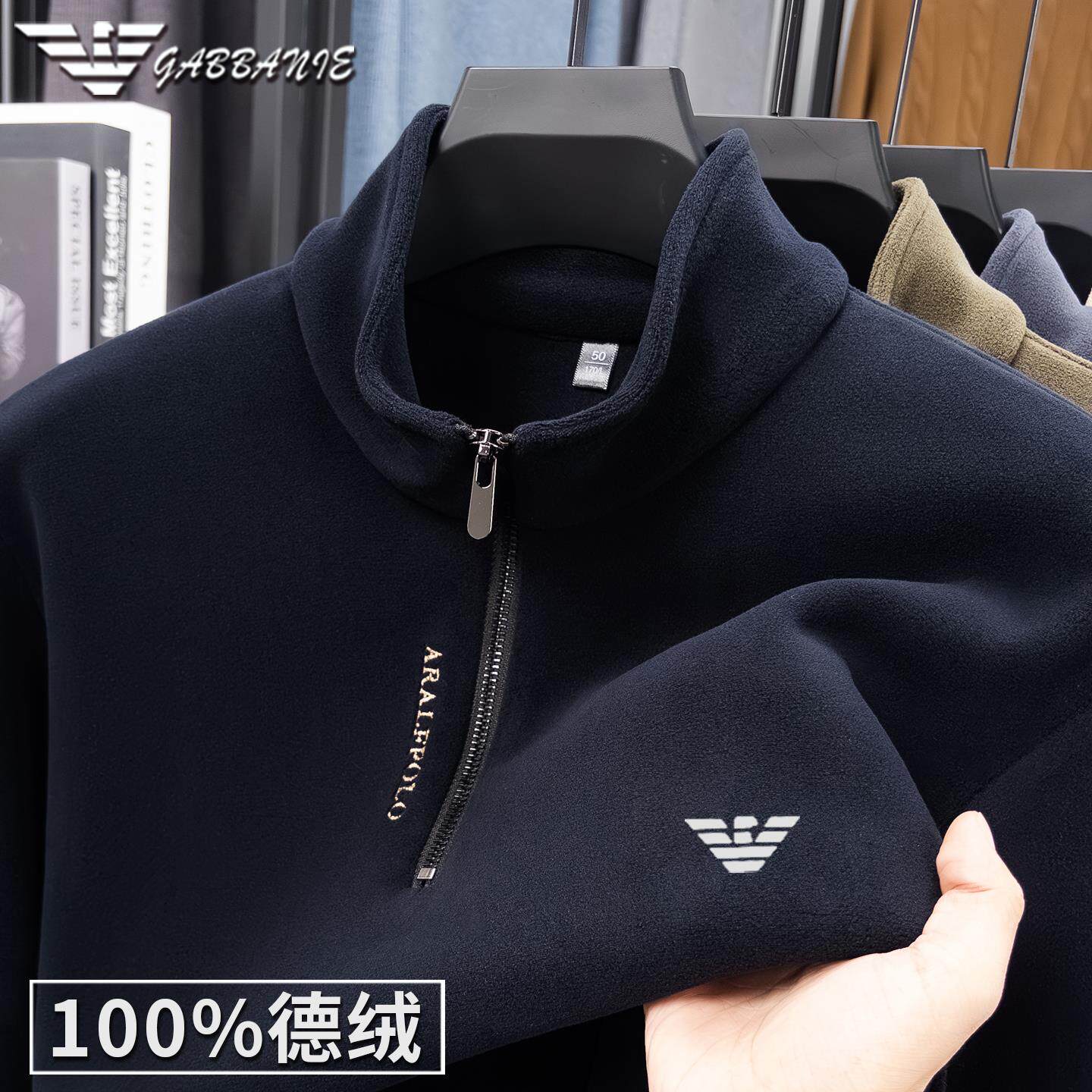 正品意大利名牌高端拉链卫衣男士秋冬德绒打底衫立领保暖长袖t恤
