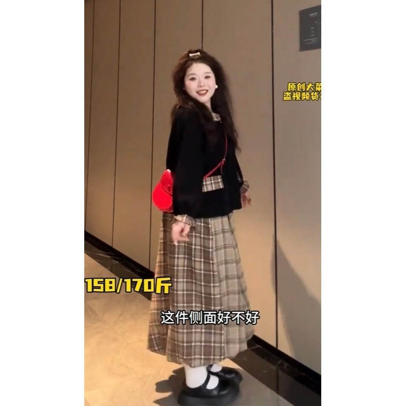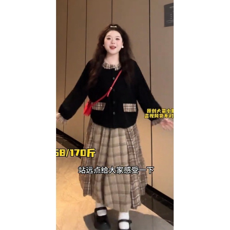 【大菜小肥定制打版】大码学院风减龄活泼春秋复古宽松休闲两件套