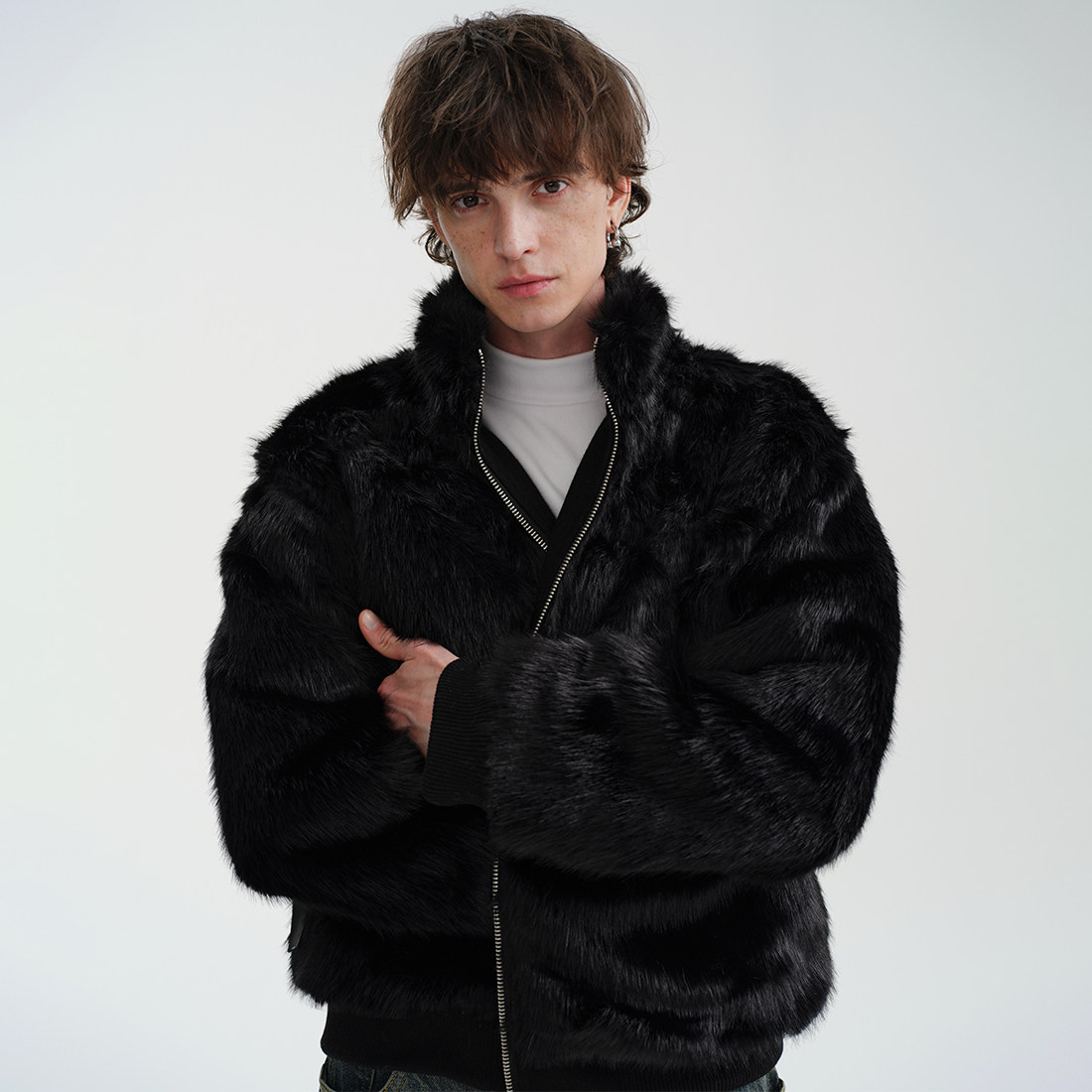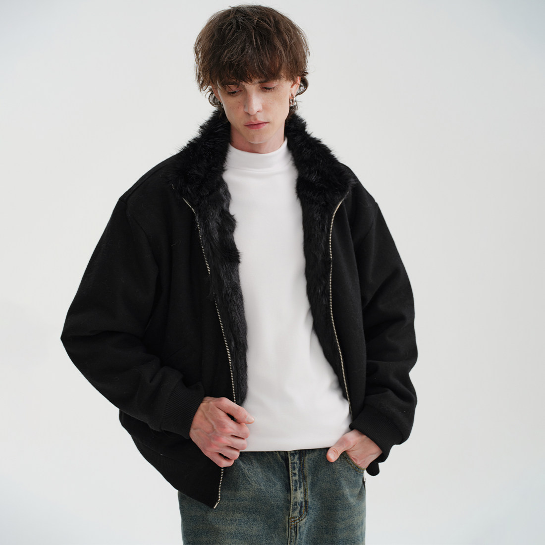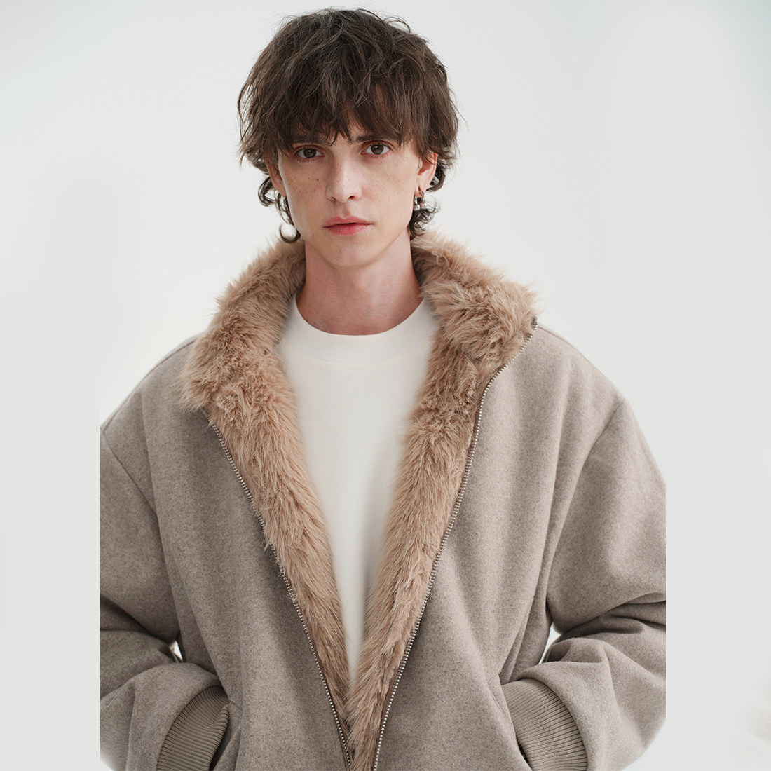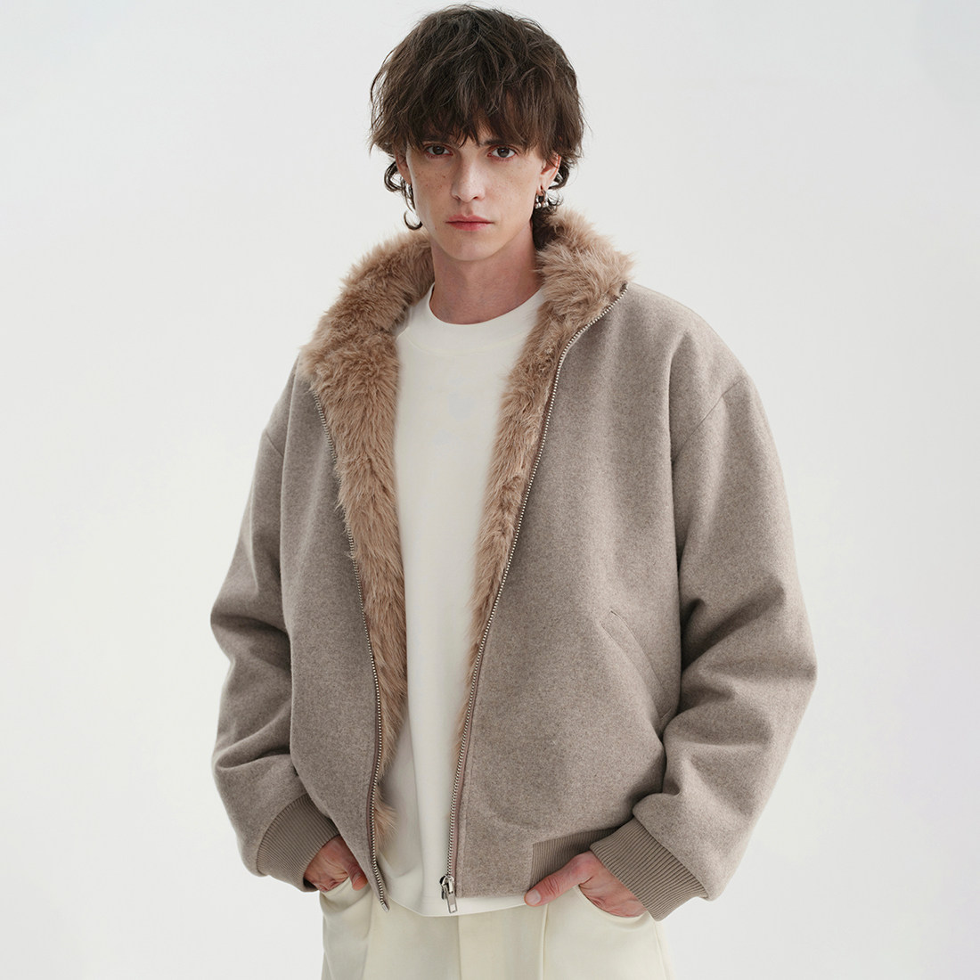 MIDASHAND 羊毛座山雕棉服男士外套冬短款双面穿工装立领夹克加厚