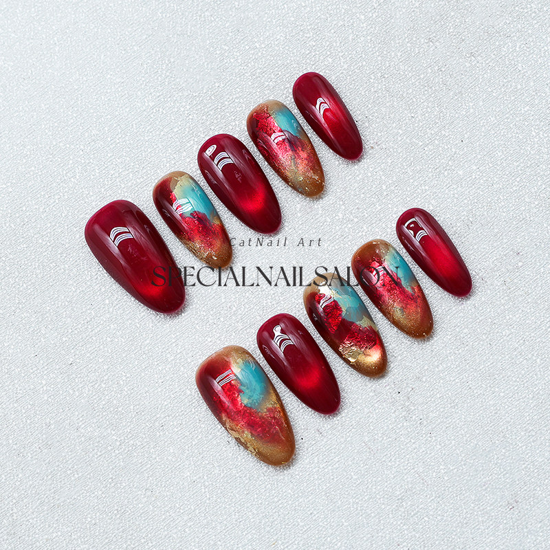 【赤燎华裳】纯手工穿戴甲2026新款新娘婚甲高级感晕染新年美甲片