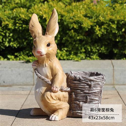 卡通兔子花盆树脂工艺品动物雕塑花园林景观商场酒店房产装饰摆件