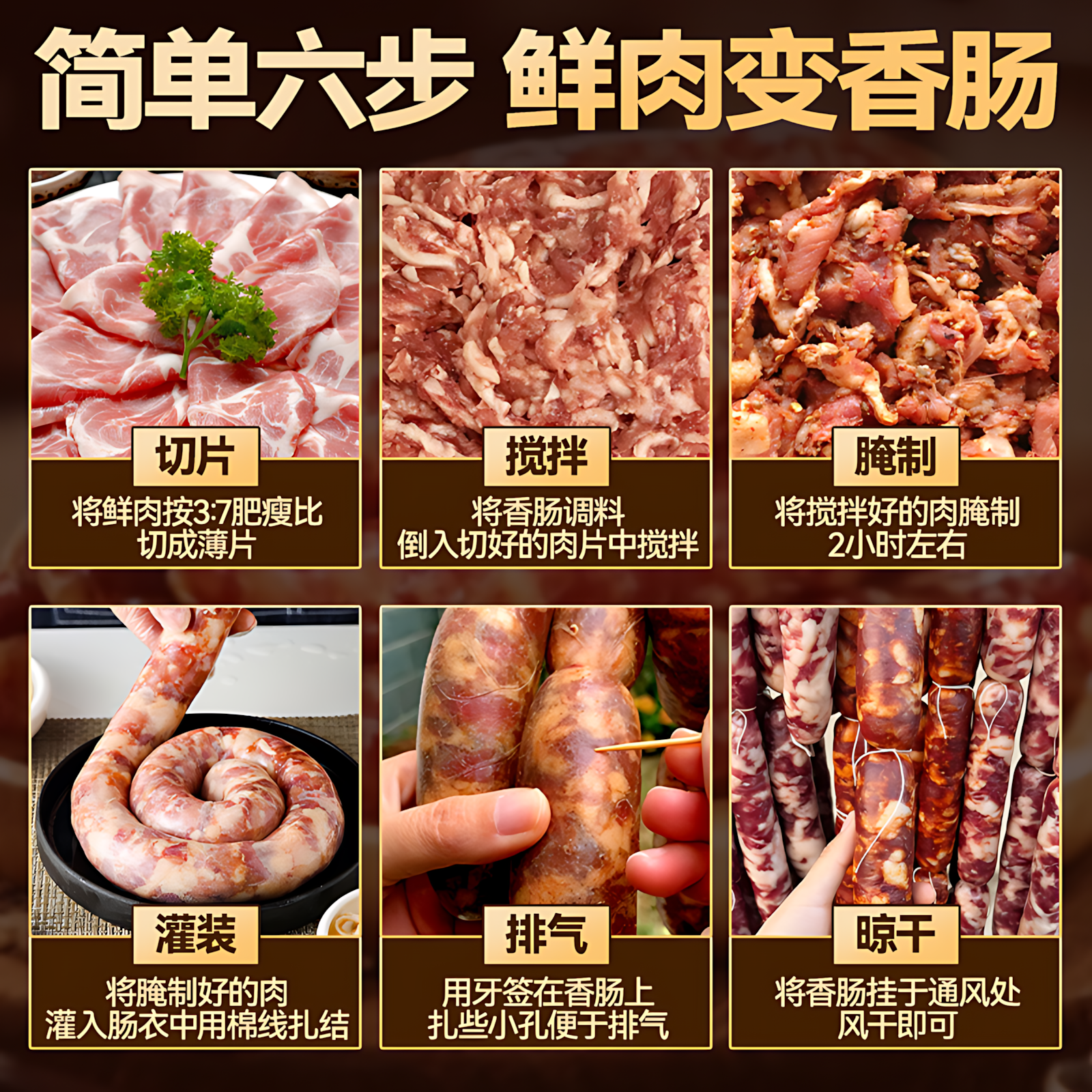 腊肠调料正宗家用麻辣五香广味调味料灌香肠腊肠调料肠衣官方旗舰