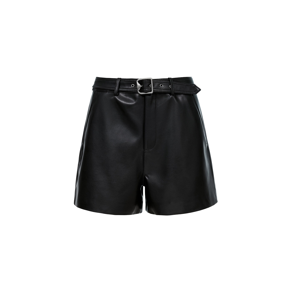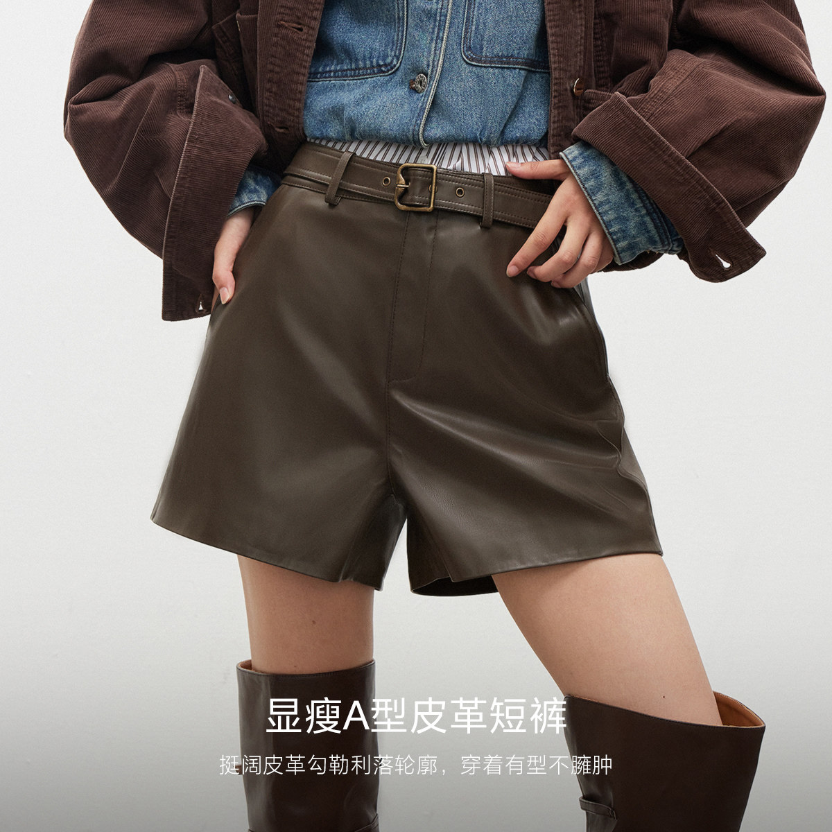 绫致ONLY2025秋季新款廓形一字口袋质感PU短裤休闲裤女