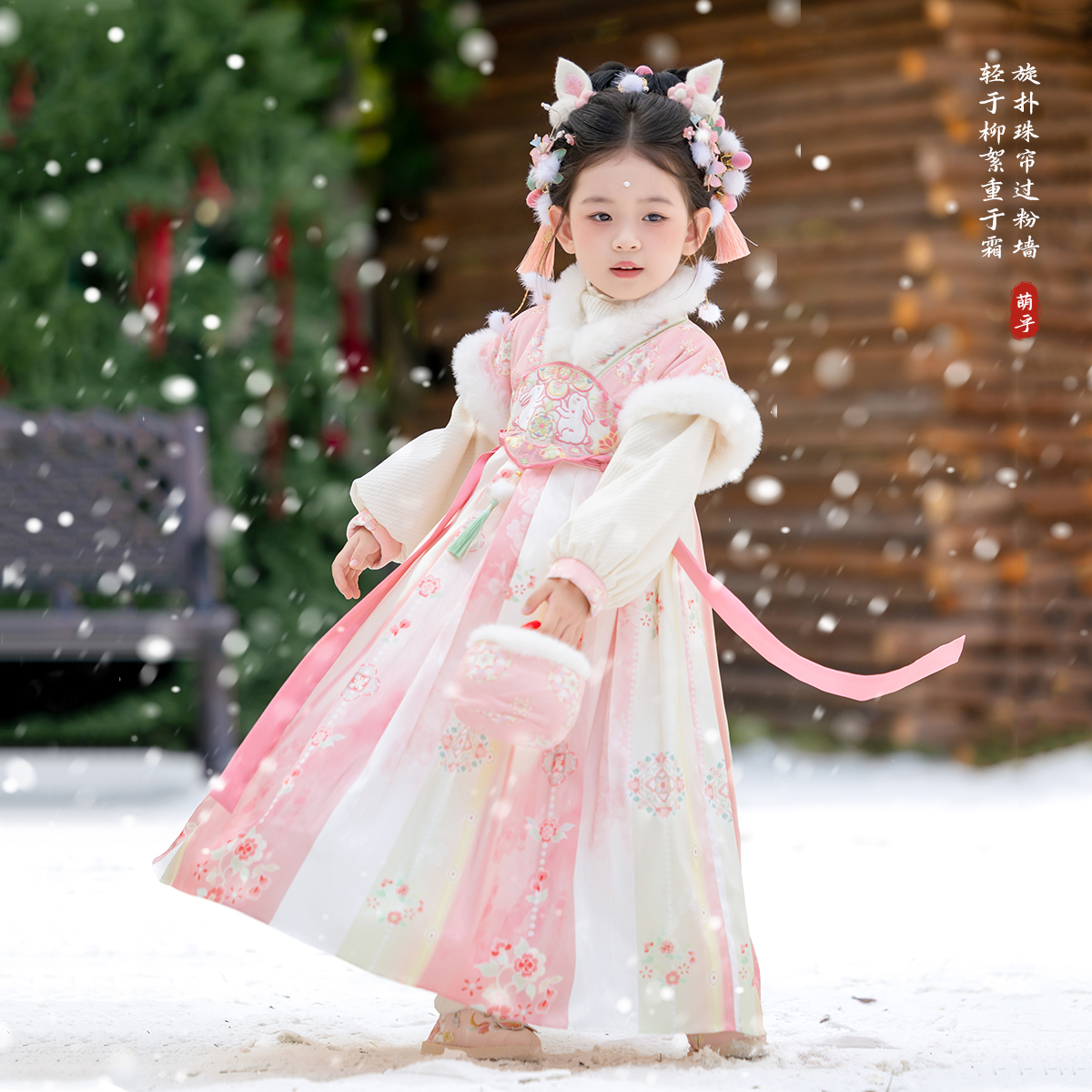汉服女童冬季2025新款儿童古风仙气连衣裙小女孩国风加绒公主襦裙