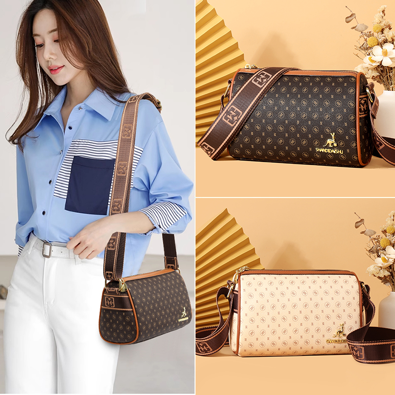 品牌真皮印花单肩包2025新款潮时尚头层牛皮休闲斜挎枕头水桶女包