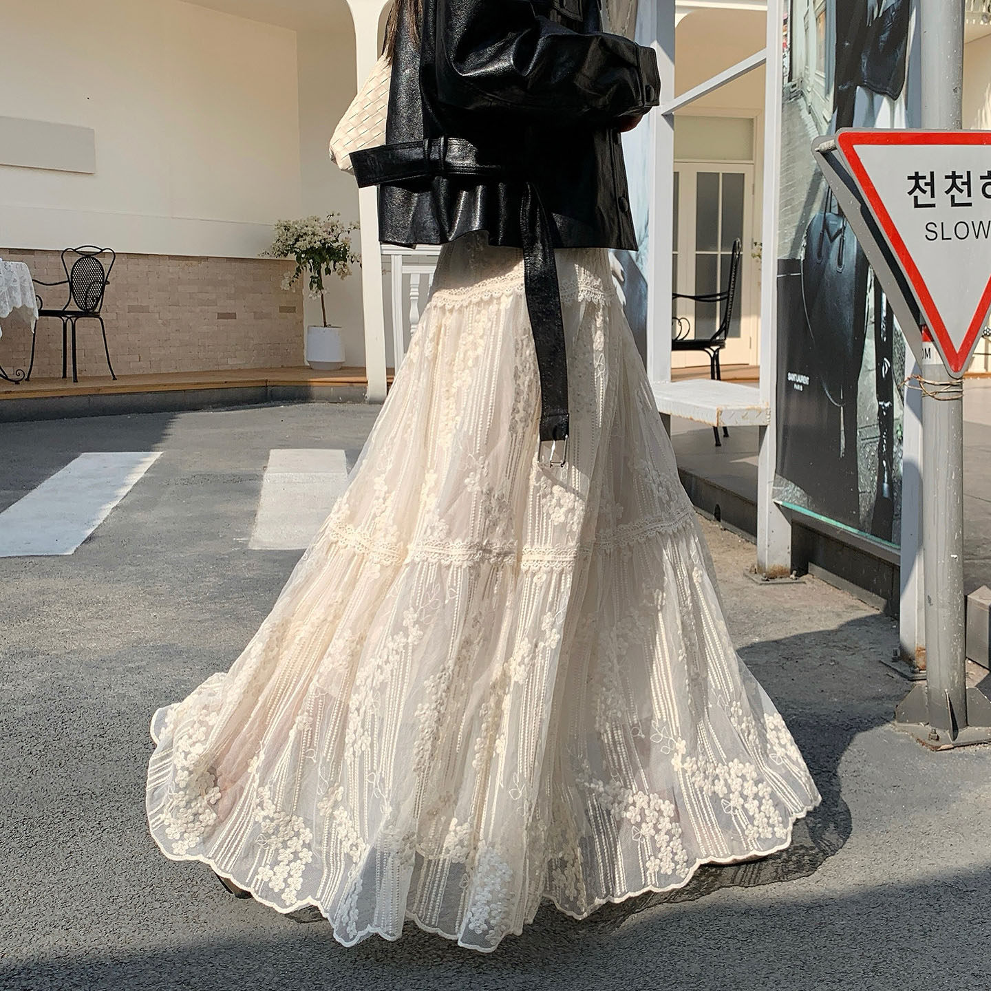 法式浪漫风重工刺绣网纱半身裙女2026春夏百搭显瘦蕾丝a字长裙子