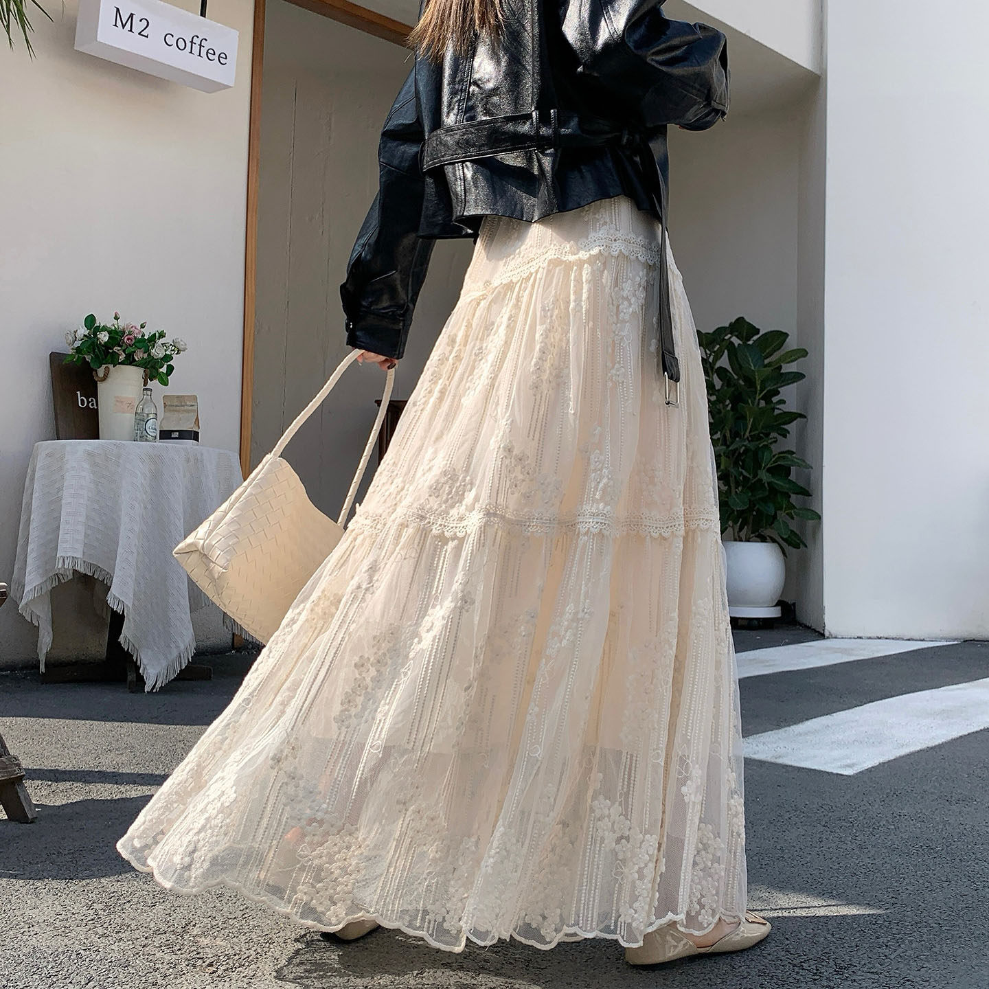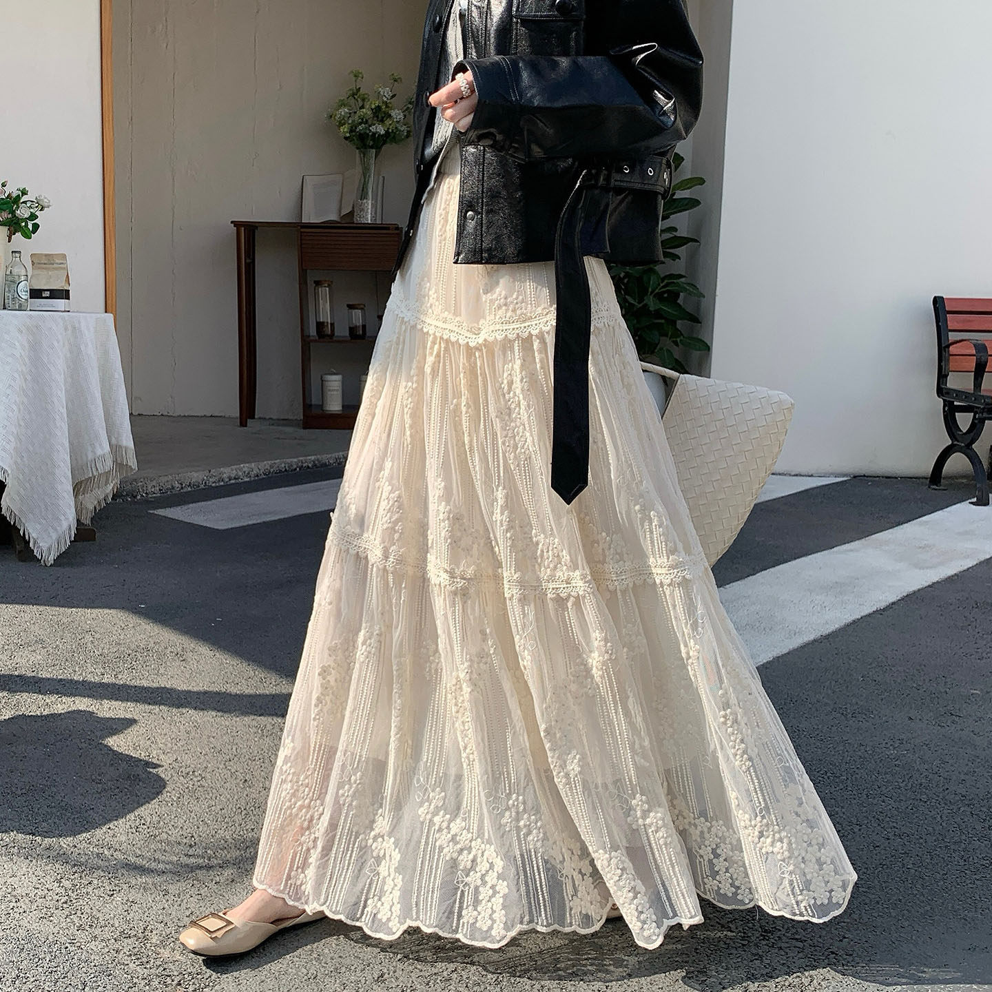 法式浪漫风重工刺绣网纱半身裙女