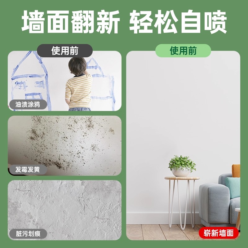 墙面自喷漆白色家用白墙面去污修墙漆复补墙漆乳胶漆室内翻新环保