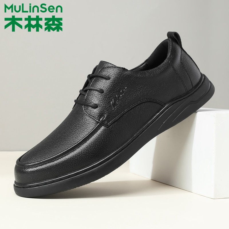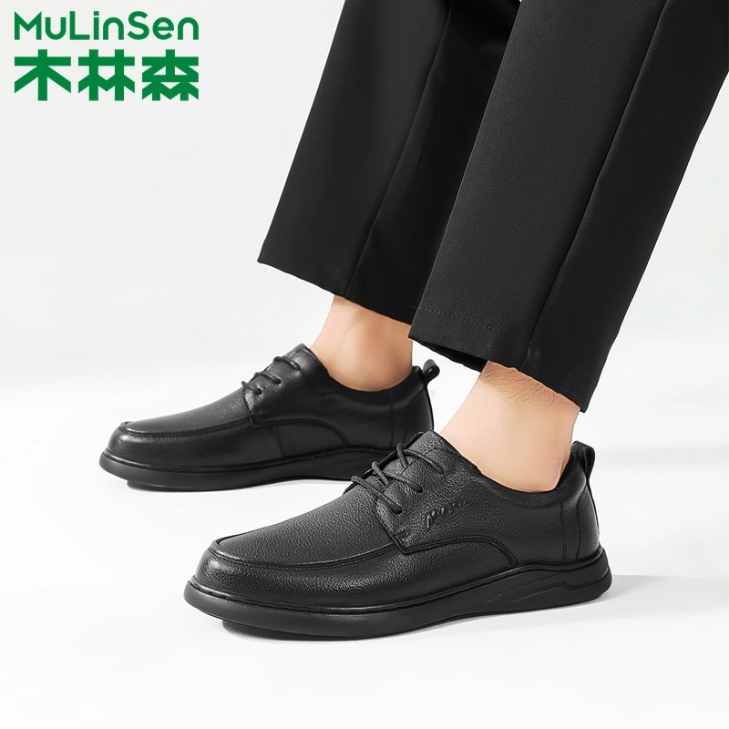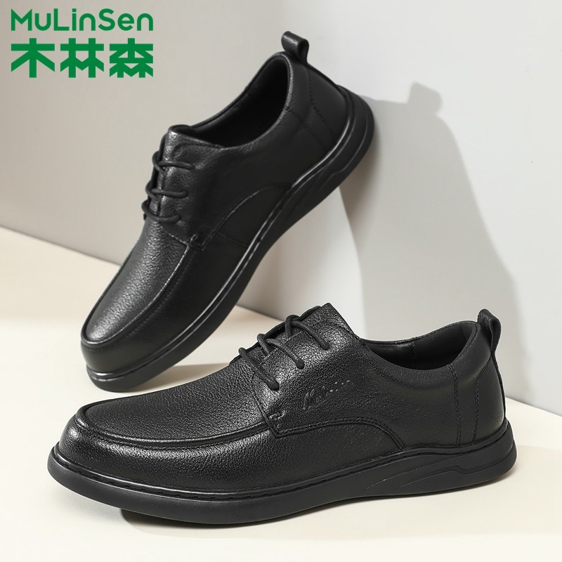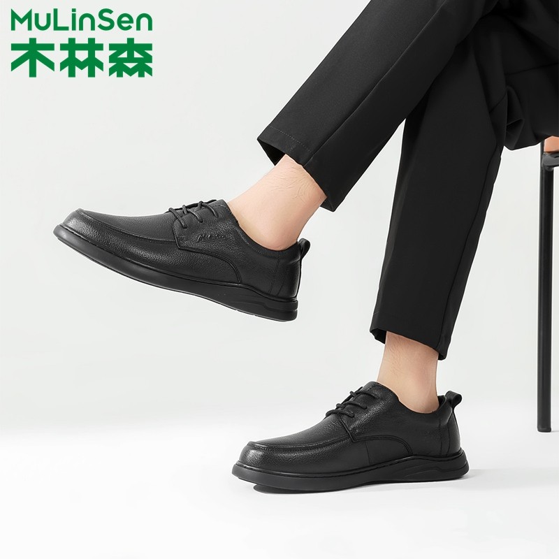 木林森男鞋2025秋季新款通勤商务休闲皮鞋男士舒适羊皮系带爸爸鞋