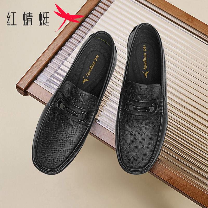红蜻蜓真皮舒适软底男乐福豆豆鞋