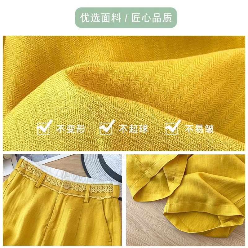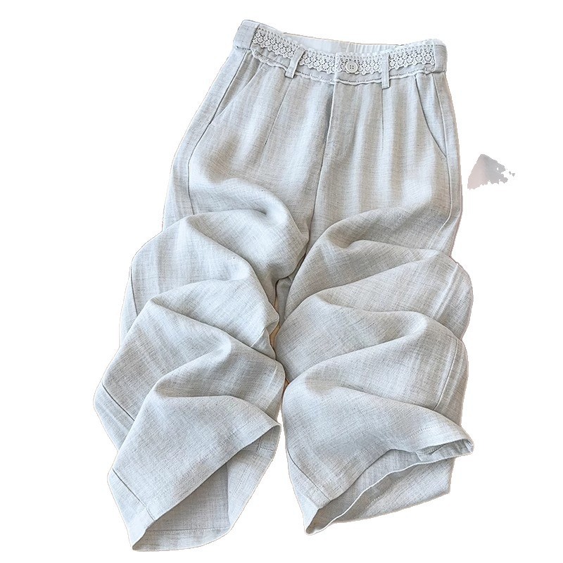 棉麻阔腿裤女夏薄款2025新款舒服休闲直筒冰丝裤高腰蕾丝亚麻裤子