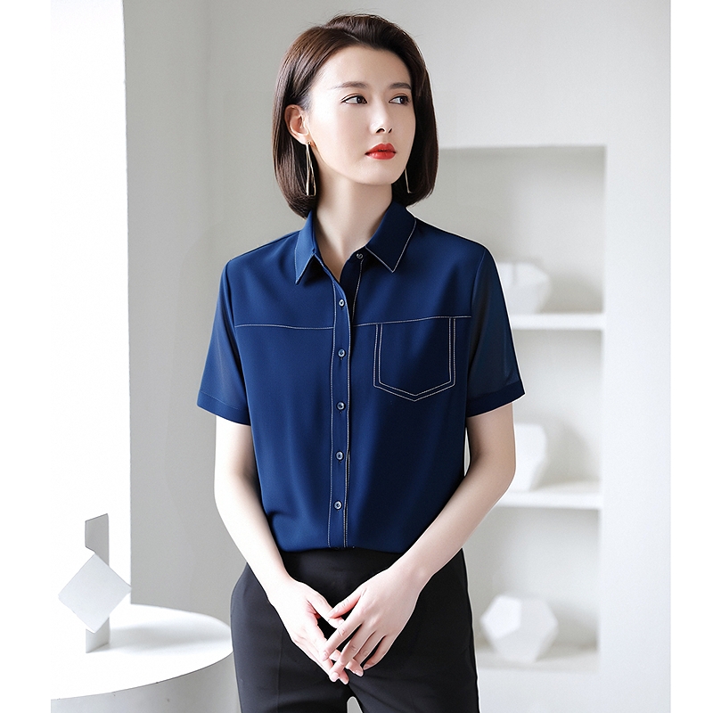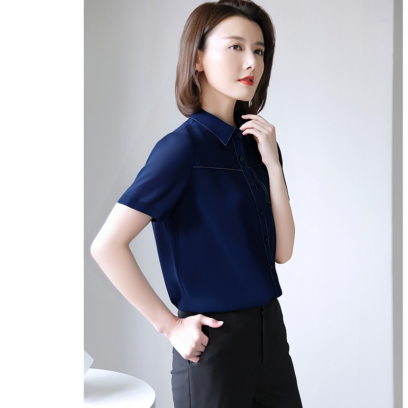 璐丝百丽时尚简约短袖衬衫女气质百搭显瘦职业通勤上衣2025新款