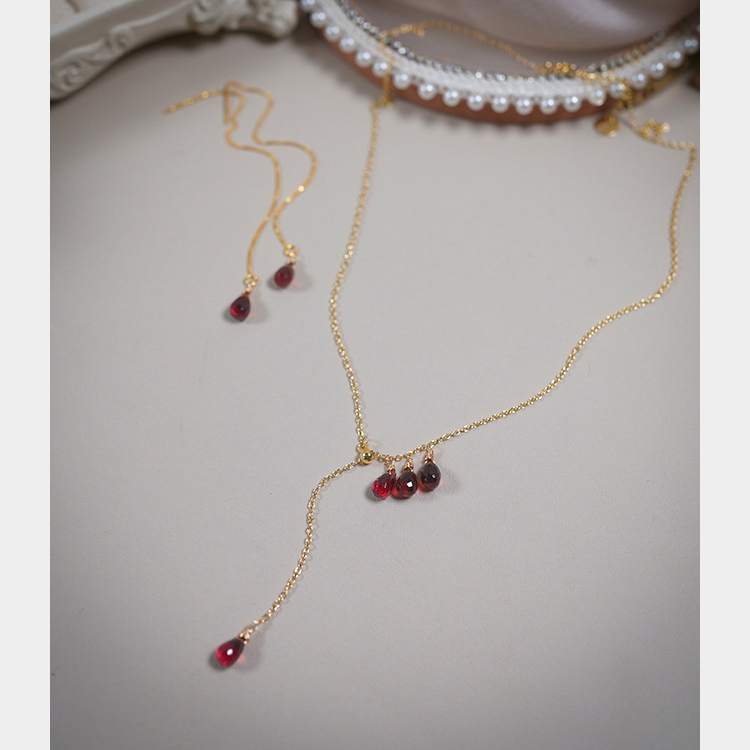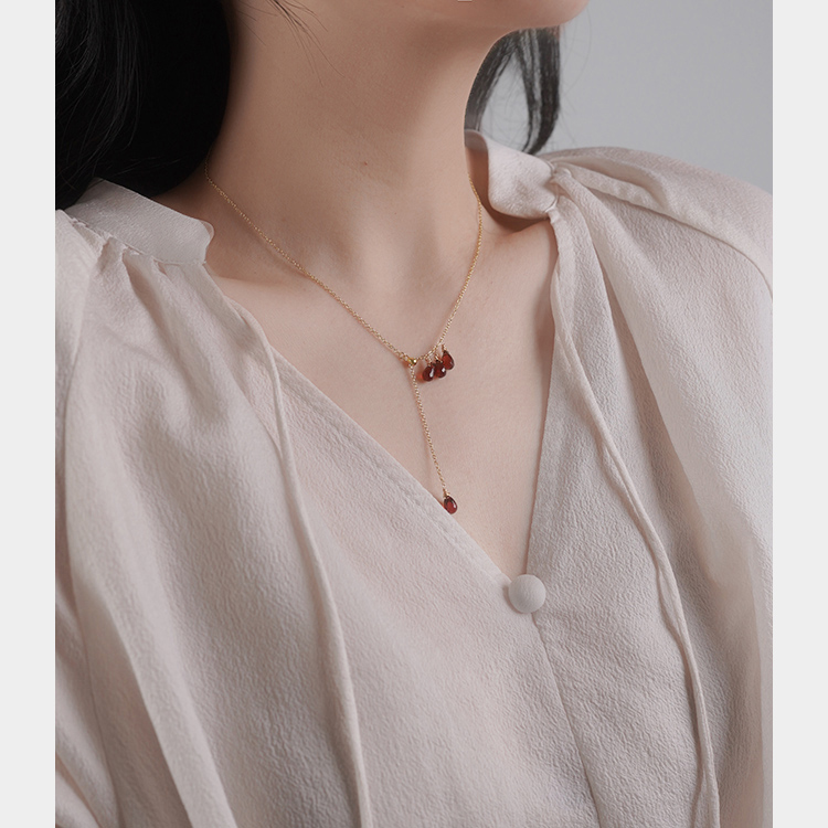 yeajewel原创设计感石榴石水滴y字项链925银复古气质锁骨链30924