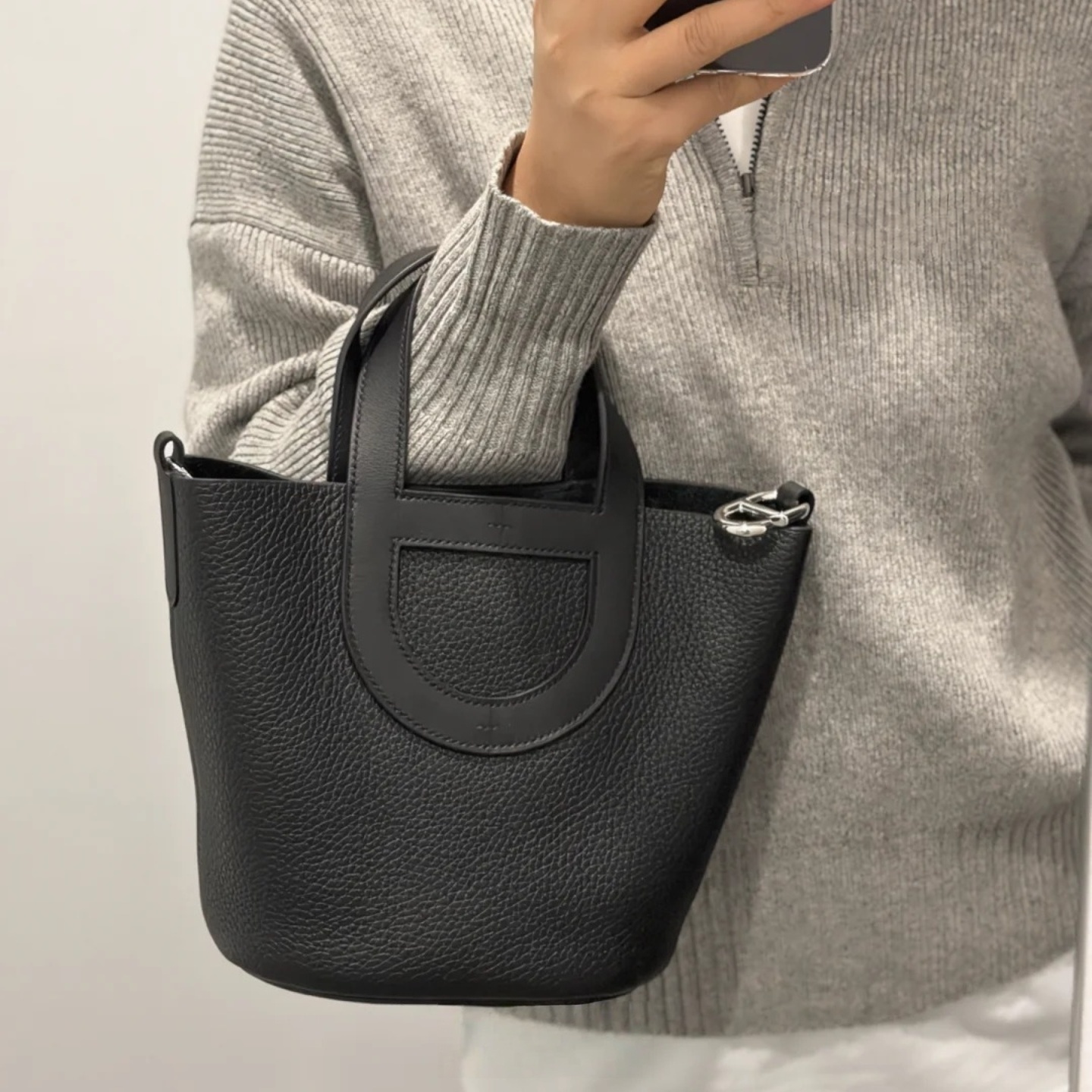 H纯手工蜜蜡线猪鼻子TC皮大容量18CM菜篮子包时尚百搭手提女包