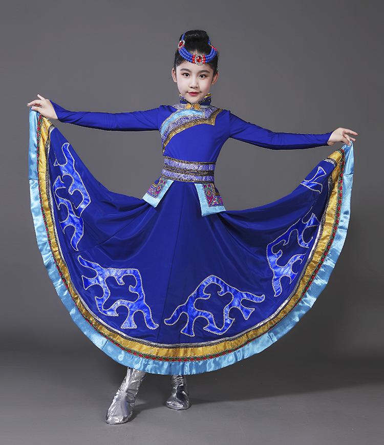 新款儿童演出服蒙古舞蹈裙幼儿园少数民族蒙古族表演服装女童天边