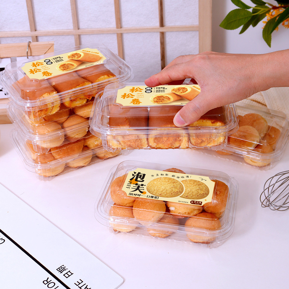 透明西点包装盒蛋糕卷泡芙饼干点心食品分装打包盒香葱松松卷盒