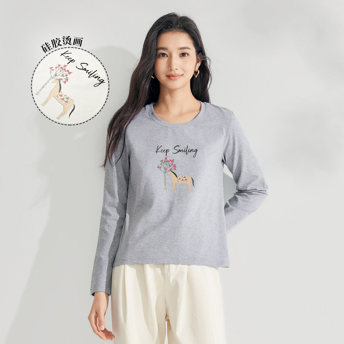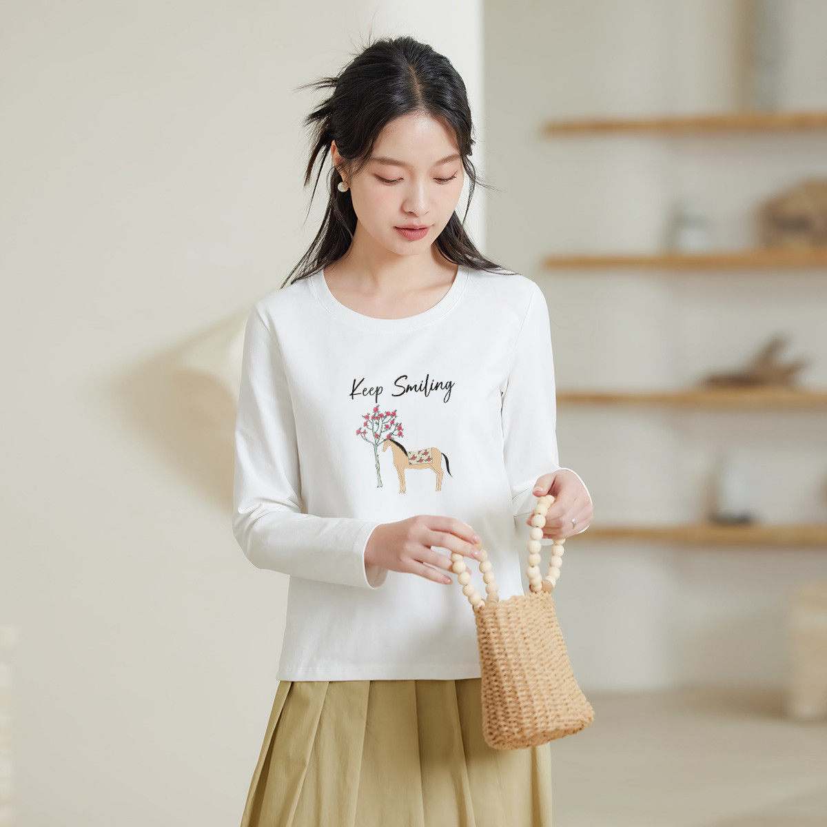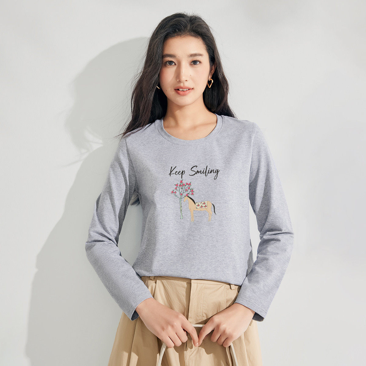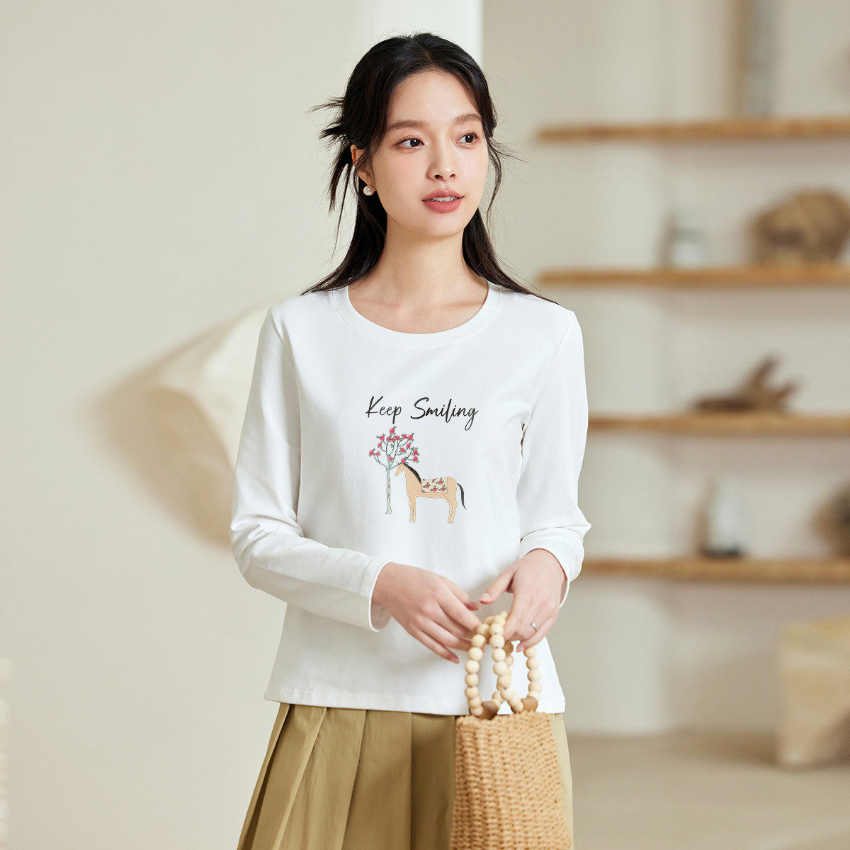 茵曼2026春季新款长袖t恤女士正肩轻薄款时尚减龄内搭打底衫爆款