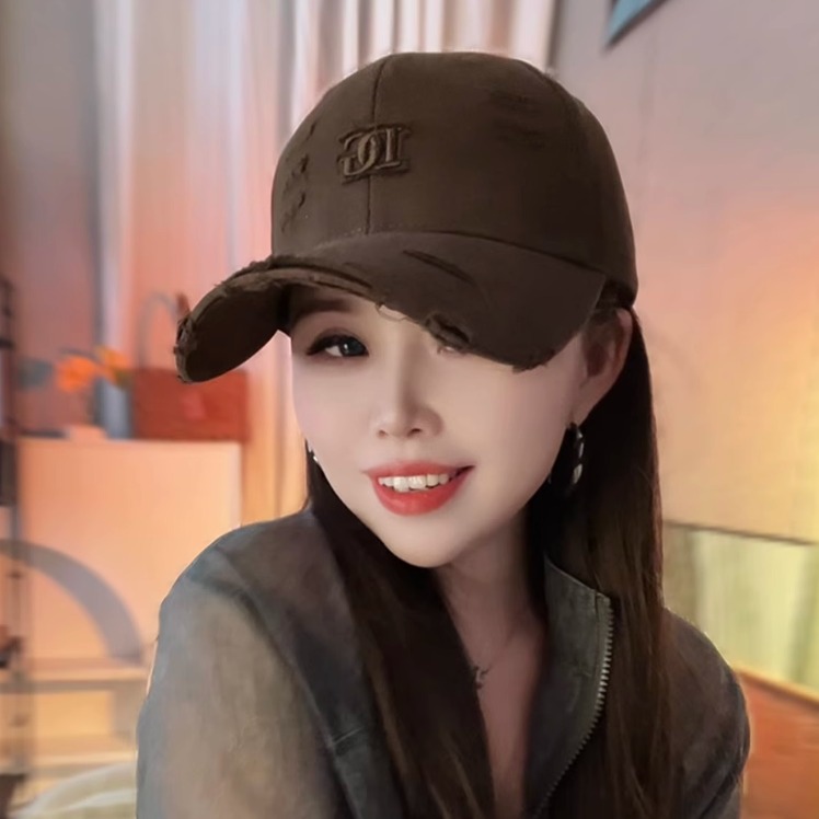 美式复古大头围棒球帽子女韩版街头刺绣字母破洞鸭舌帽显脸小帽子