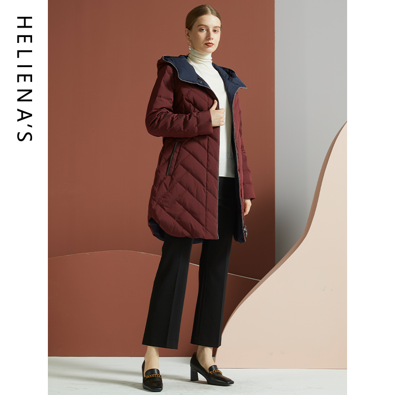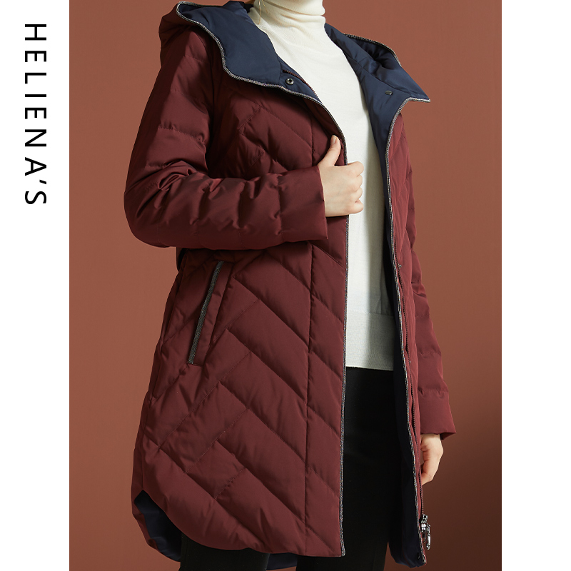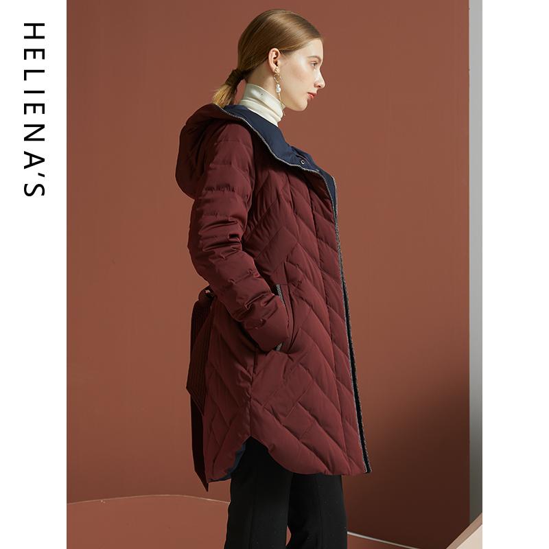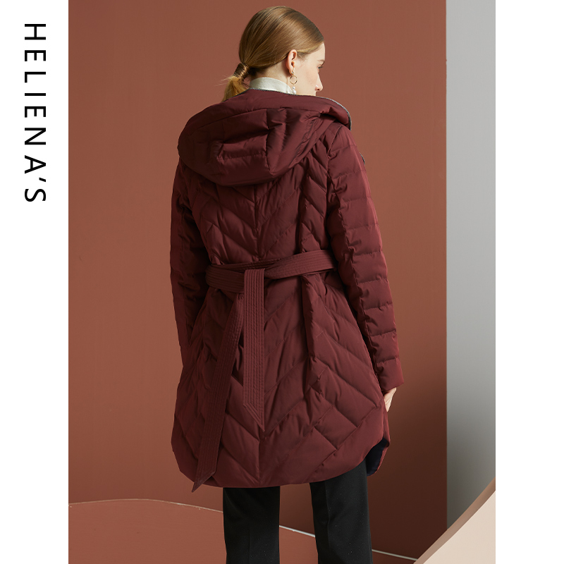 海兰丝2024冬季新款商场同款中长款加厚连帽白鸭绒红色羽绒服女