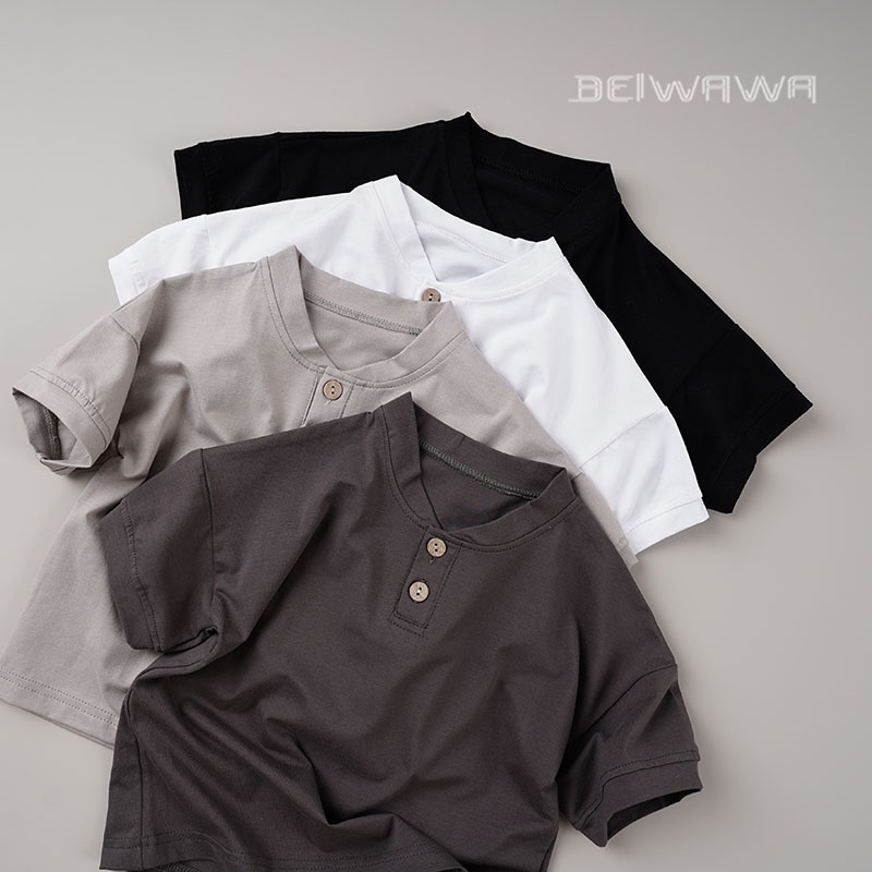 文艺范~小童宝宝夏薄款冰瓷棉凉感T恤男童纯色立领透气短袖体恤衫