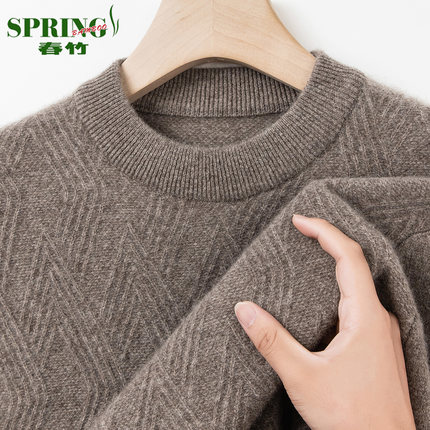 春竹高端特级纯山羊绒衫男半高圆领冬季新款加厚中年休闲大码毛衣