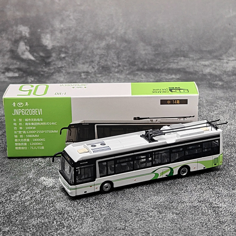 95文创1/110青年电车JNP6120BEVI合金巴士14路20路上海公交模型