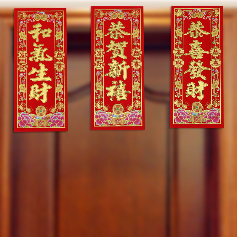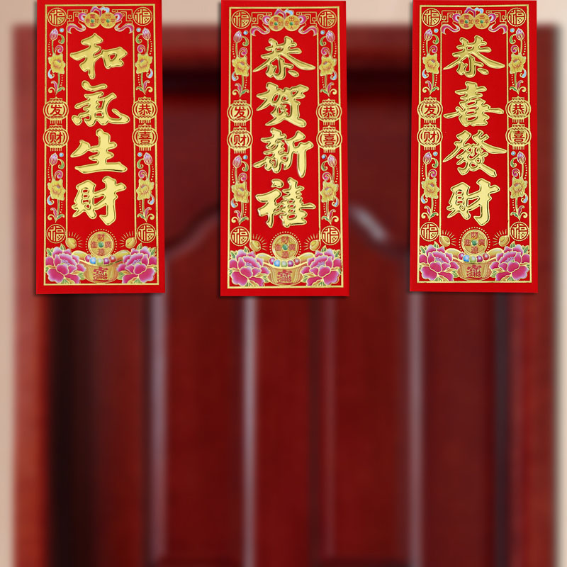 2025新年植绒珲春贴纸蛇年春节对联小利是钱春联大门四字挥春门贴
